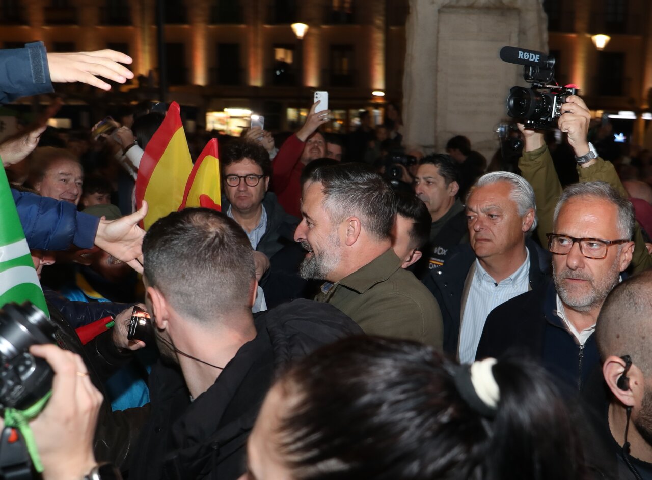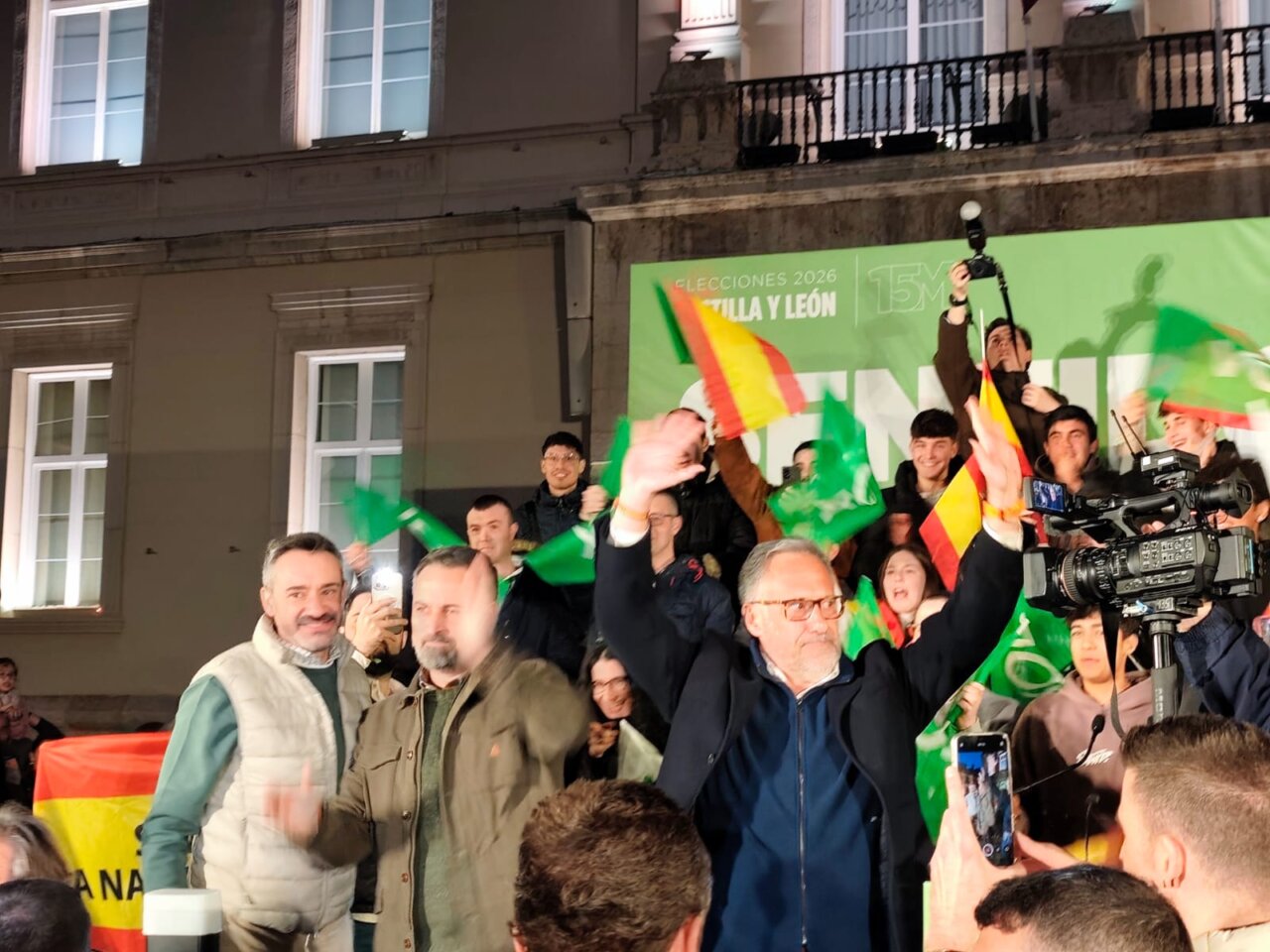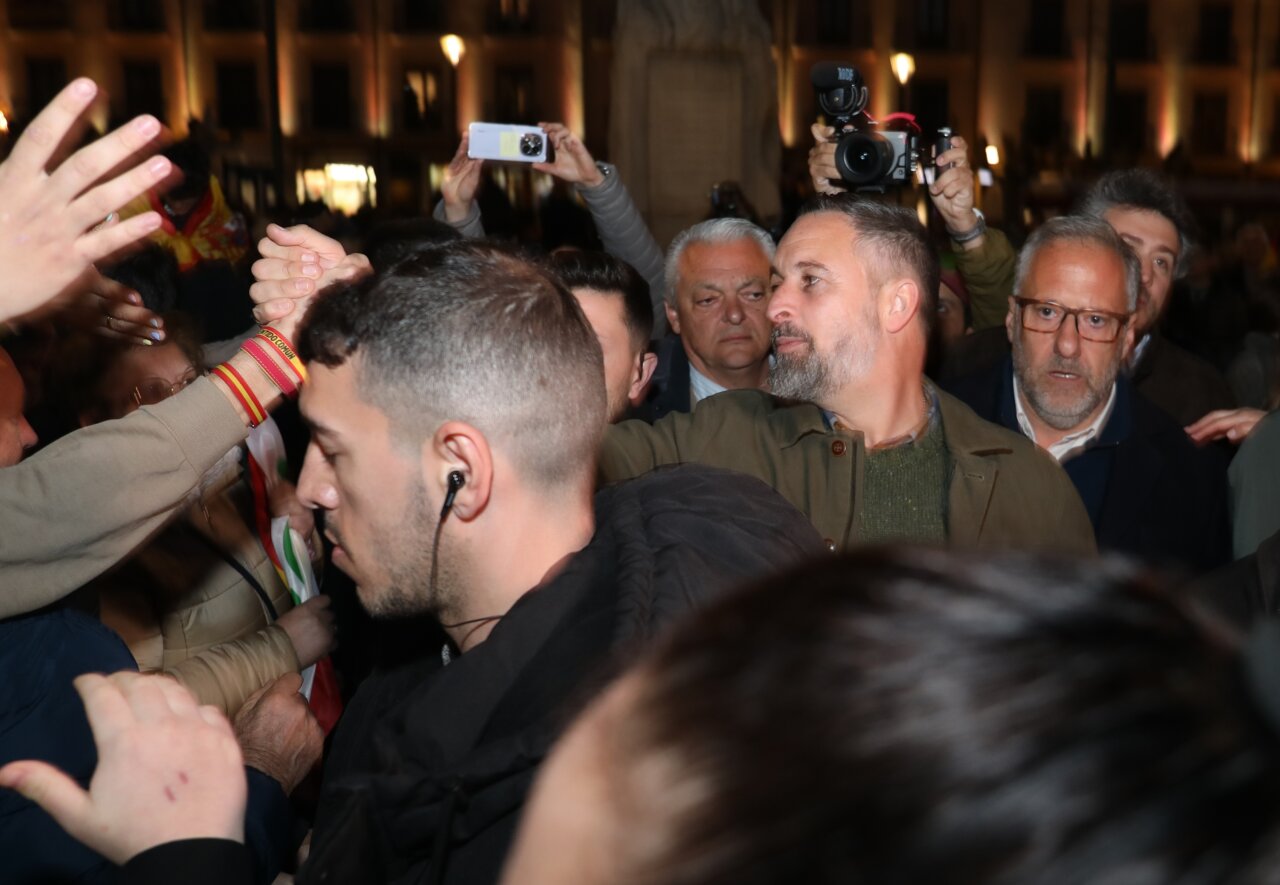 VOX y Santiago Abascal llenaron esta tarde-noche buena parte de la Plaza Mayor. No entera, eso Palencia lo reserva para otro tipo de eventos, pero es de destacar la movilización y el fervor, casi religioso, de los correligionarios que recibieron al presidente de VOX en su participación en un acto de campaña de cara a las elecciones autonómicas de Castilla y León.
