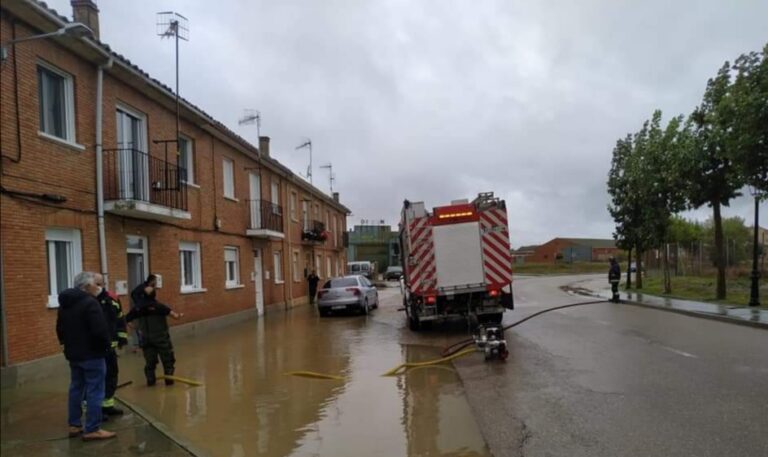 Bomberos de Frómista actúan en Amusco tras una tromba de agua. Calles anegadas oblugan a intervenir para restablecer la normalidad...