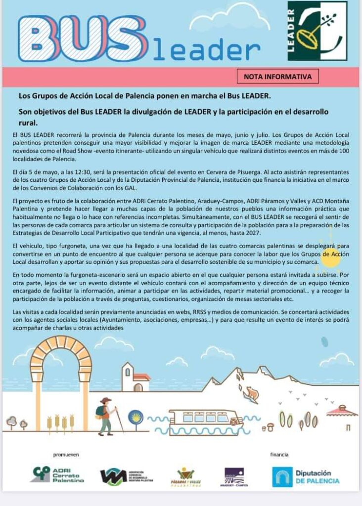 Los Grupos de Acción Local de Palencia ponen en marcha el Bus LEADER. El BUS LEADER recorrerá la provincia de...
