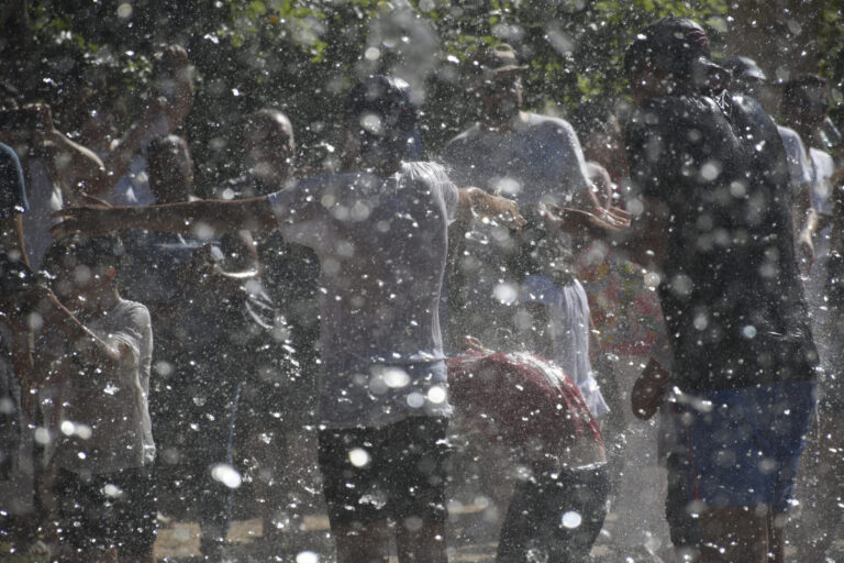 Unas 5.000 personas se remojan en el encendido extraordinario por Santiago Apóstol de las fuentes del Palacio Real de La...