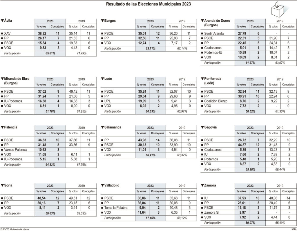 Los palentinos han dado 10 asientos al PSOE, 8 al PP, 3 a VOX, 3 a Vamos Palencia y 1...