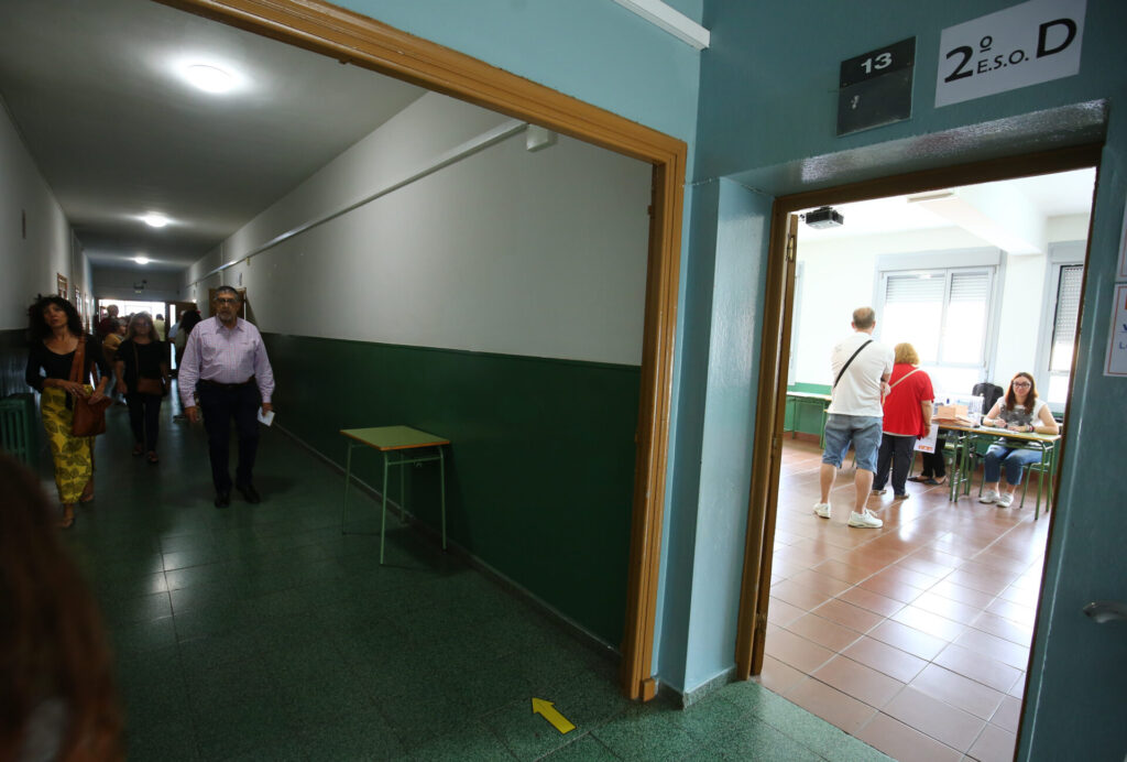 El calor y las ganas de aprovechar el puente de Santiago provocó una mayor afluencia a los colegios electorales a...