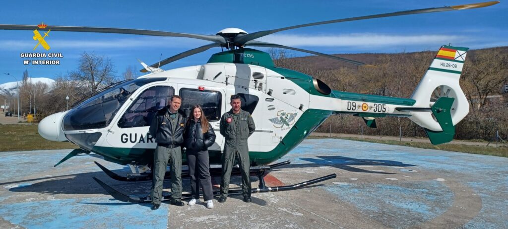 Una joven velillense disfruta junto a sus padres de la experiencia de volar en el helicóptero de la Benemérita, como...