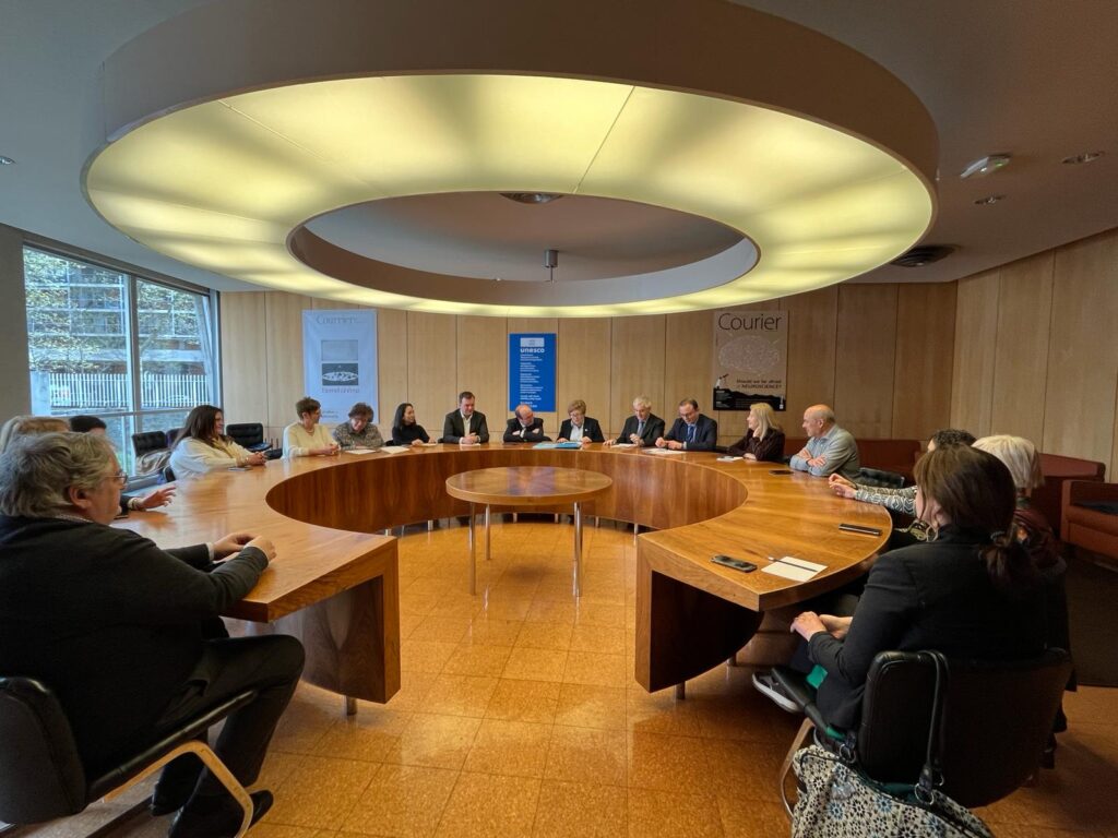 Toman parte de una Coordinadora Internacional que ha sido recibida por el embajador español en la Unesco, Miguel Iceta Una...