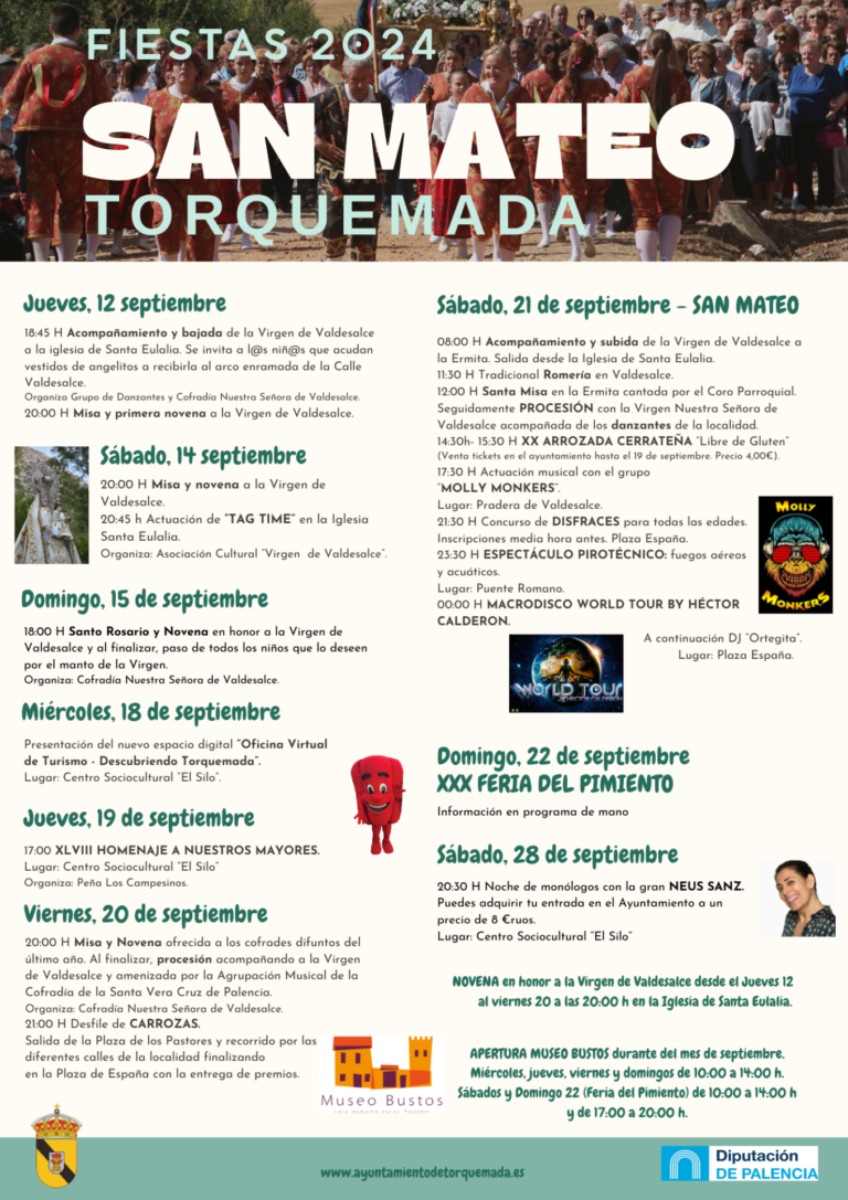Jueves, 12 de septiembre 18:45 h: Acompañamiento y bajada de la Virgen de Valdesalce a la iglesia de Santa Eulalia....