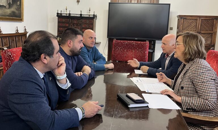 La presidenta de la Diputación, Ángeles Armisén, acompañada del diputado de Acción Territorial, Urbano Alonso, y los diputados de la...