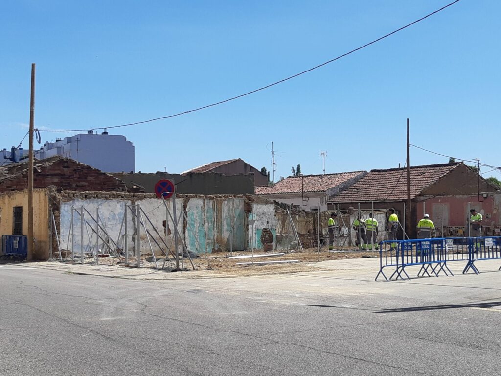 Los operarios de una contrata, una vez retirados los restos de las viviendas afectadas, vallan el terreno 25 días son...