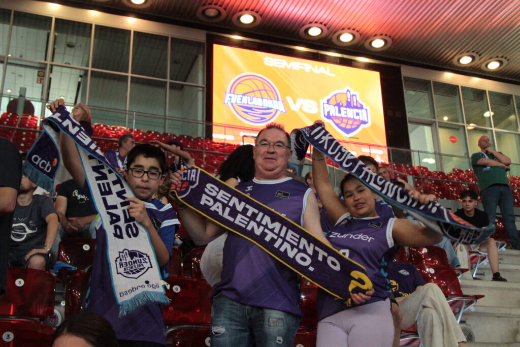 Así recibe la afición palentina a su equipo en la Caja Mágica, más morada que nunca.