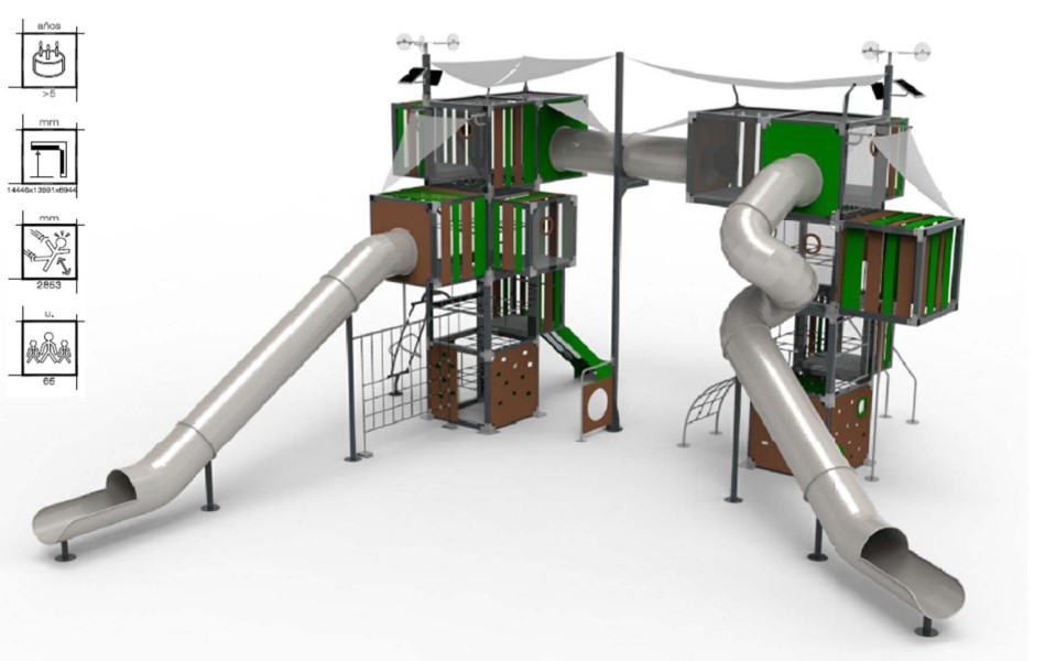 La reforma de la zona destinada a niños contempla un gran elemento con cubos en dos torres así como otros...