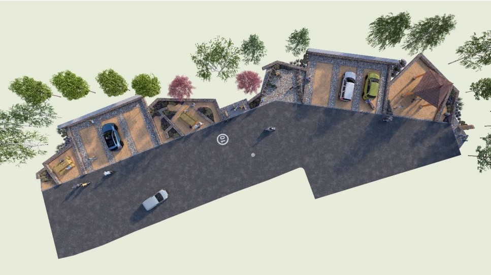 Estos puntos de encuentro estarán provistos “de zonas habilitadas para la recepción de vehículos, aparcamiento e inicio de las rutas, tanto para usuarios de la zona como para visitantes y turistas de fuera”. Para ello, contarán con una zona estancial con paneles informativos y una pérgola cubierta. Plazas de aparcamiento para 3-6 plazas de vehículos “más grandes de lo normal para poder recibir vehículos con bicicletas y facilitar su carga y descarga”.