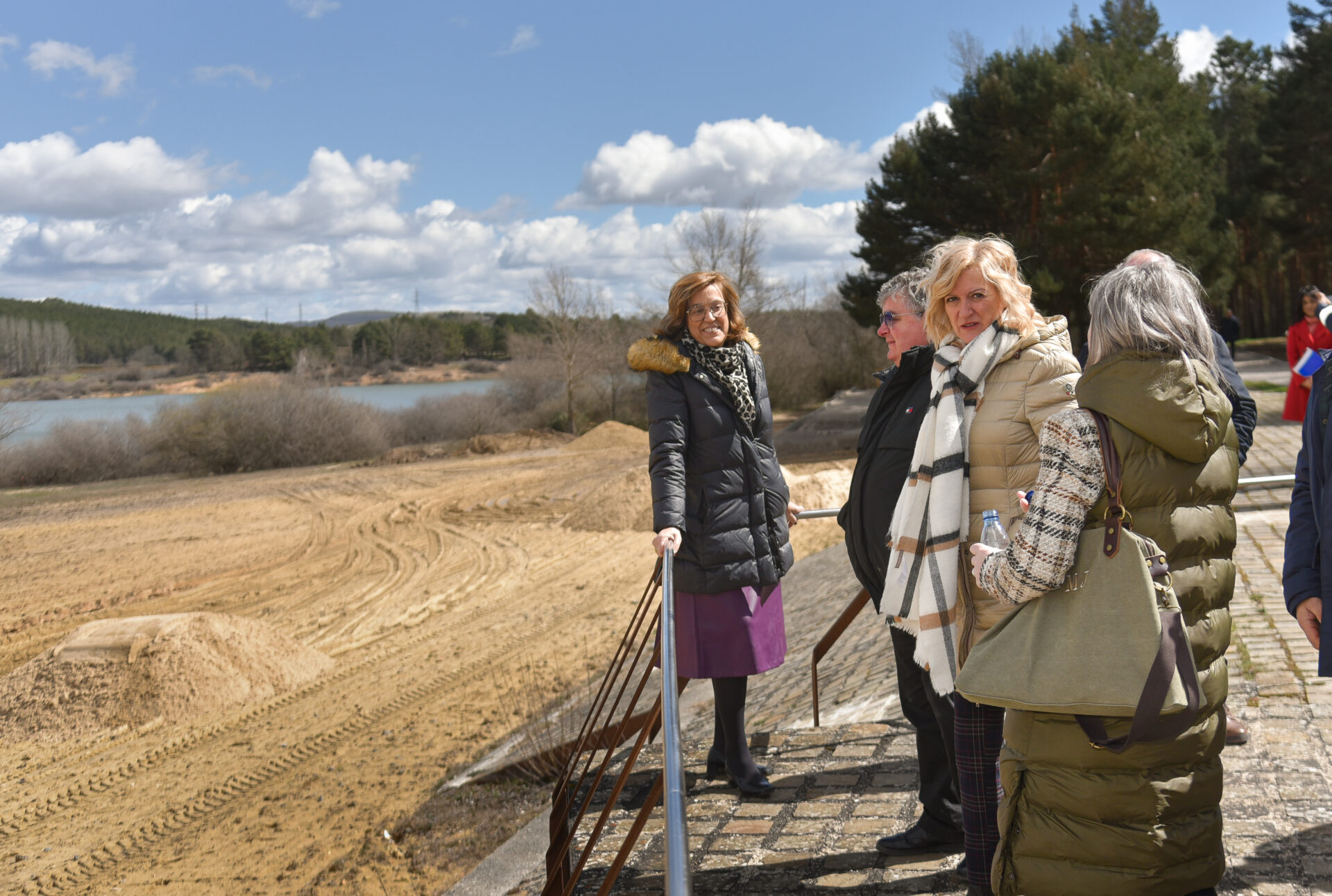 La presidente de la Diputación, Ángeles Armisén, acompañada de los diputados zona, Urbano Alonso y Jesús Sevilla, además de la alcaldesa de Aguilar, María José Ortega, ha visitado los trabajos de adecuación ambiental que se están ejecutando en la playa del embalse de la localidad galletera y que están a punto de finalizar.
