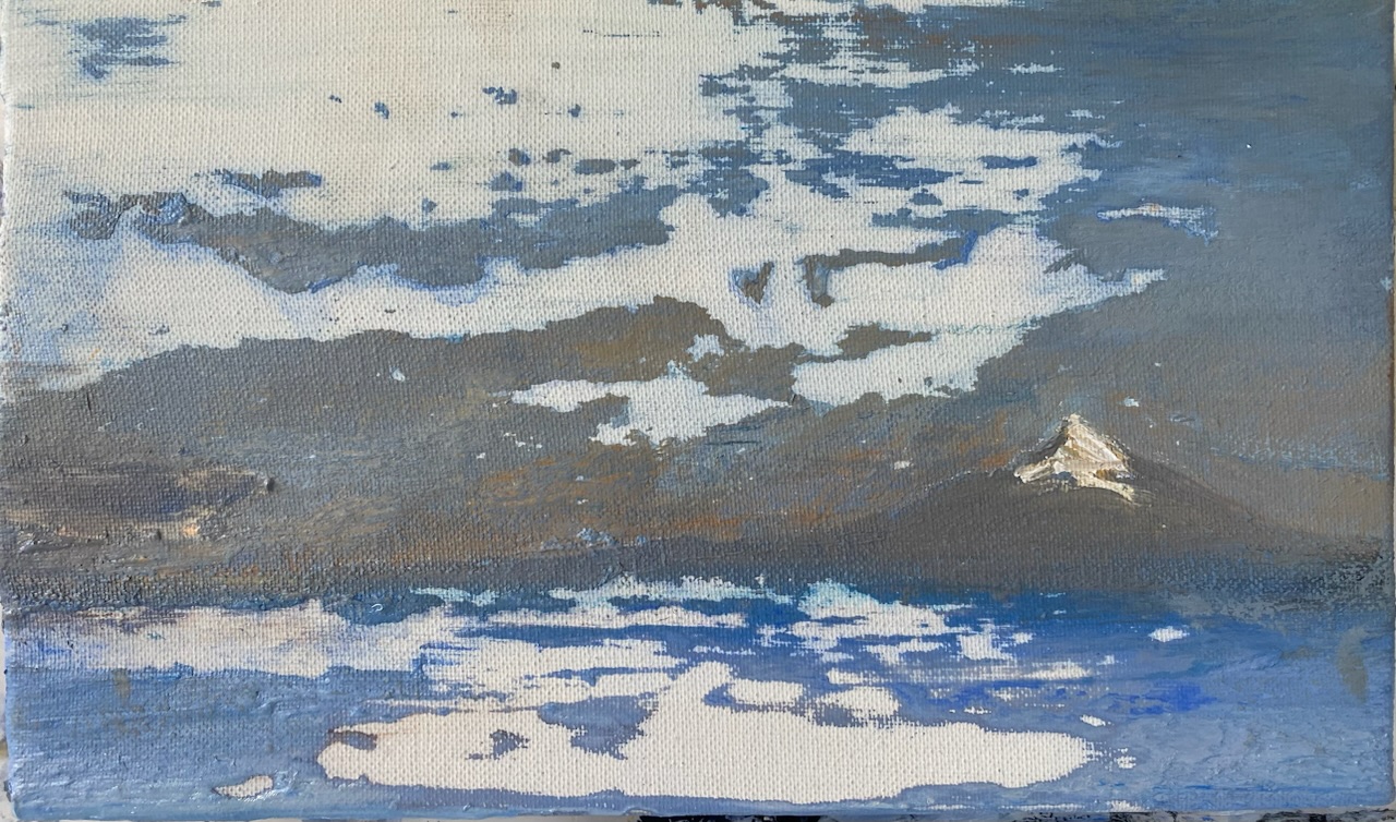 Esta primera entrega consta de una docena de pinturas de pequeño y mediano formato que evocan los paisajes de los grandes lagos del sur del país andino. Estas obras fueron realizadas entre 2024 y 2025 y algunas se inspiran en lugares concretos. “En esta serie, intento capturar los perfiles de los volcanes de esta región, observados desde distintos puntos de vista y distancias, como el imponente volcán Osorno, en contraste con la belleza cristalina de sus vastas extensiones acuáticas, especialmente del Lago Llanquihue, o los saltos de Petrohué, cuyo entorno de vegetación exuberante se eleva hacia el cielo, formando lo que llamo una nube verde que se funde con los cielos transparentes del sur de Chile”, explica el pintor.