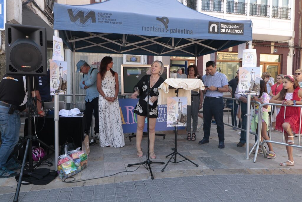 En el acto, que tuvo lugar en la plaza de España de Aguilar, también estuvieron presentes la concejala de Cultura, Soraya Isasi; el director del festival, Jorge Sanz; el director corporativo de Galletas Gullón, Francisco Hevia; y María del Mar Aparicio, de Joyería Aparicio.