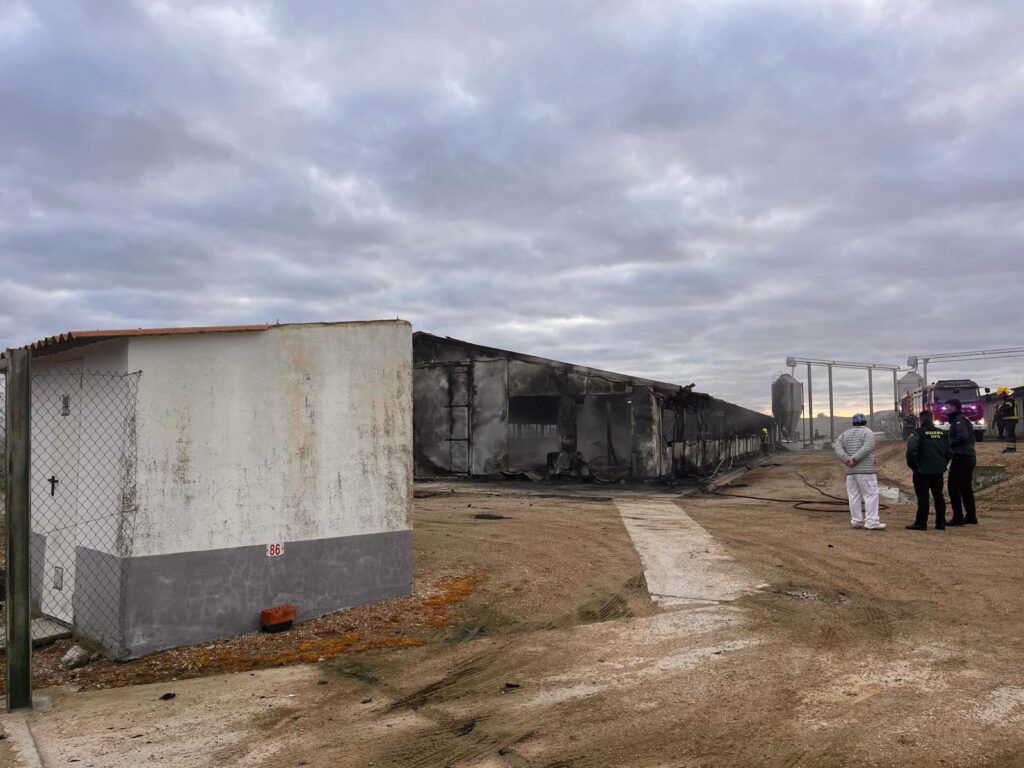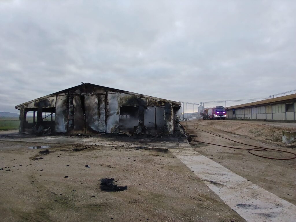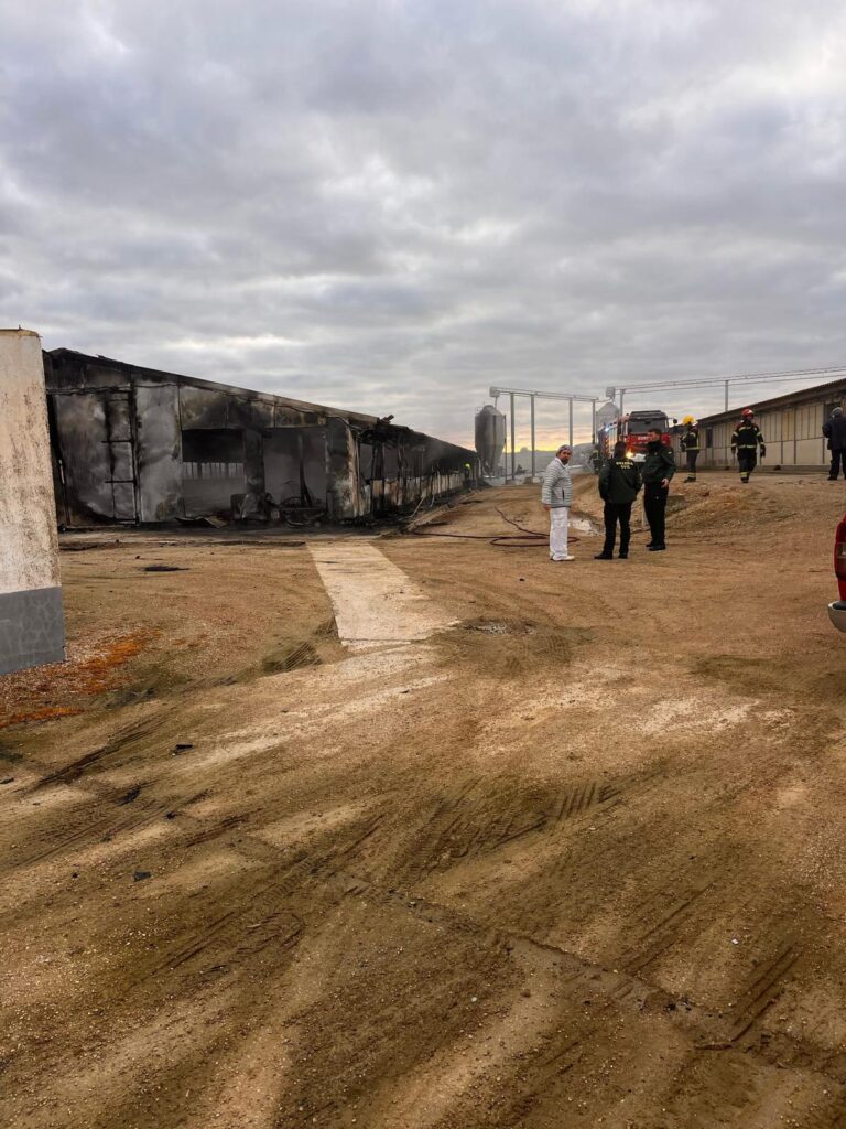 Finalmente, el fuego quedaba controlado a las 8.30 horas, pero la nave quedaba completamente arrasada. El equipo desplazado trabajó en las labores de extinción para evitar que el fuego se propagara a otra de las dos naves contiguas a la primera y que el humo asfixiara a las aves de otra de las naves.