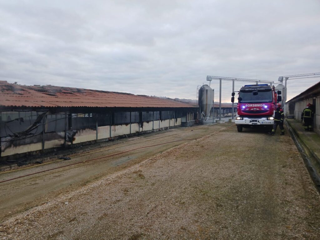 Una nave de la empresa COBB situada en la localidad palentina de Cevico de la Torre ha ardido por completo esta madrugada con unos 12.000 gallinas reproductoras en su interior.