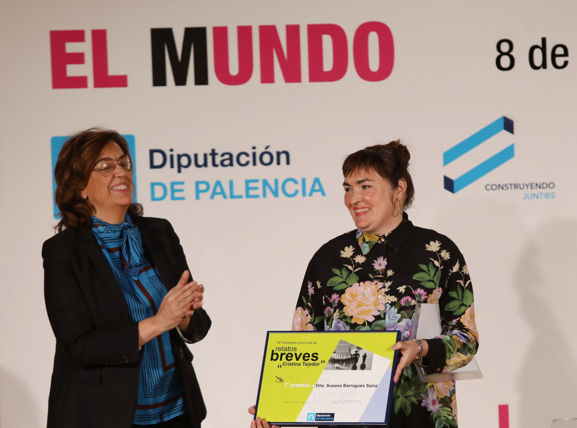 Tras la intervención de la presidenta de la institución provincial, se entregaron los XVIII Premios de Relatos Breves ‘Cristina Tejedor’, que buscan la creación literaria y el compromiso con la igualdad de oportunidades de mujeres y hombres, así como los Premios por la realización de Estudios sobre la realidad de la Mujer en la provincia de Palencia del año 2022.