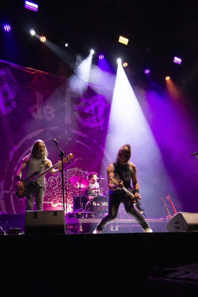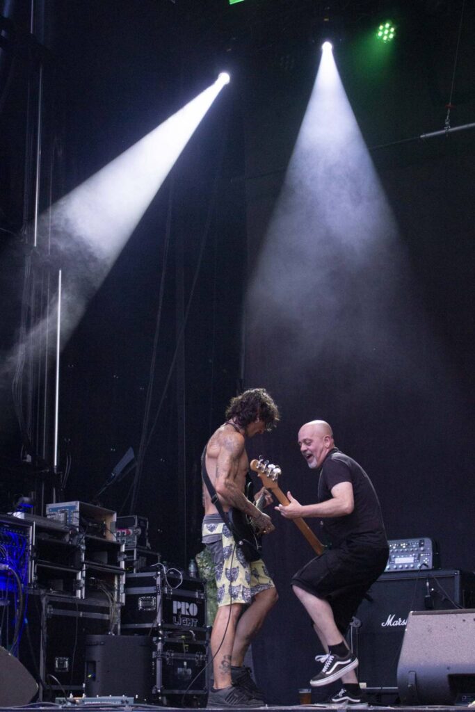 Continúan su concierto en el que, durante sus numerosas interacciones con el público, se toman un momento para dedicarle unas palabras al festival. “Si hay que mentir se miente” aseguran desde el escenario, “pero esto es en serio, nos han tratado de lujo”.