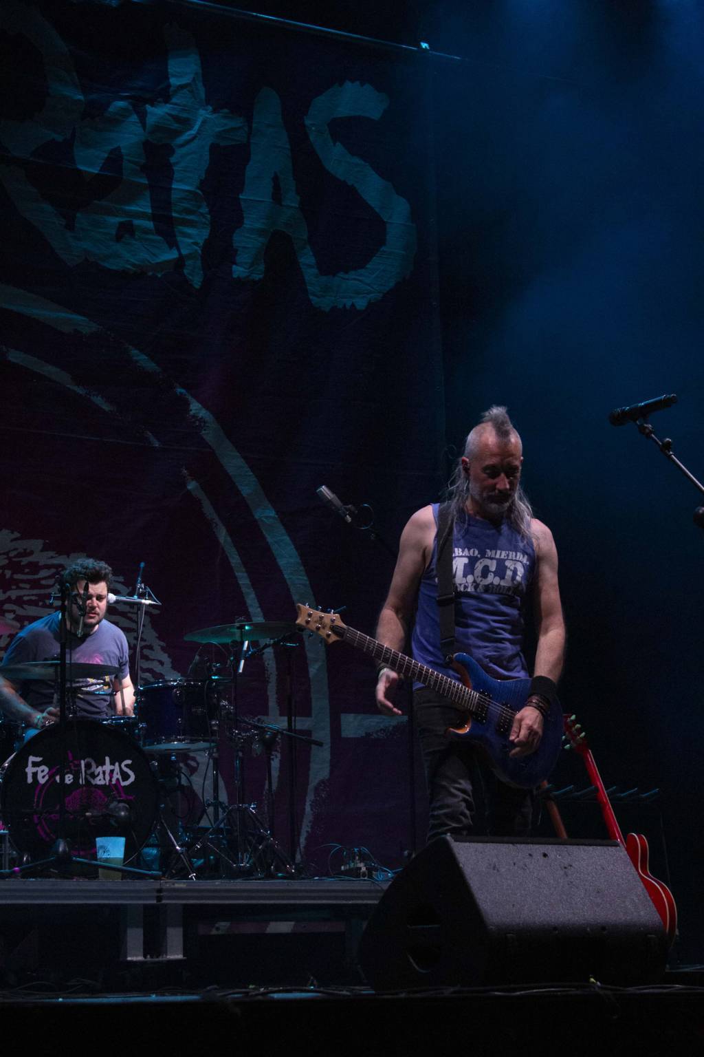 Al comenzar el concierto de Fe de Ratas se puede ver al público apurarse para volver a la pista en cuanto suenan los primeros acordes. En este caso son más parcos en palabras, y no es para menos, tienen 22 temas por tocar y parecen haberse propuesto, también, corregir el pequeño retraso con el que ha comenzado el festival.