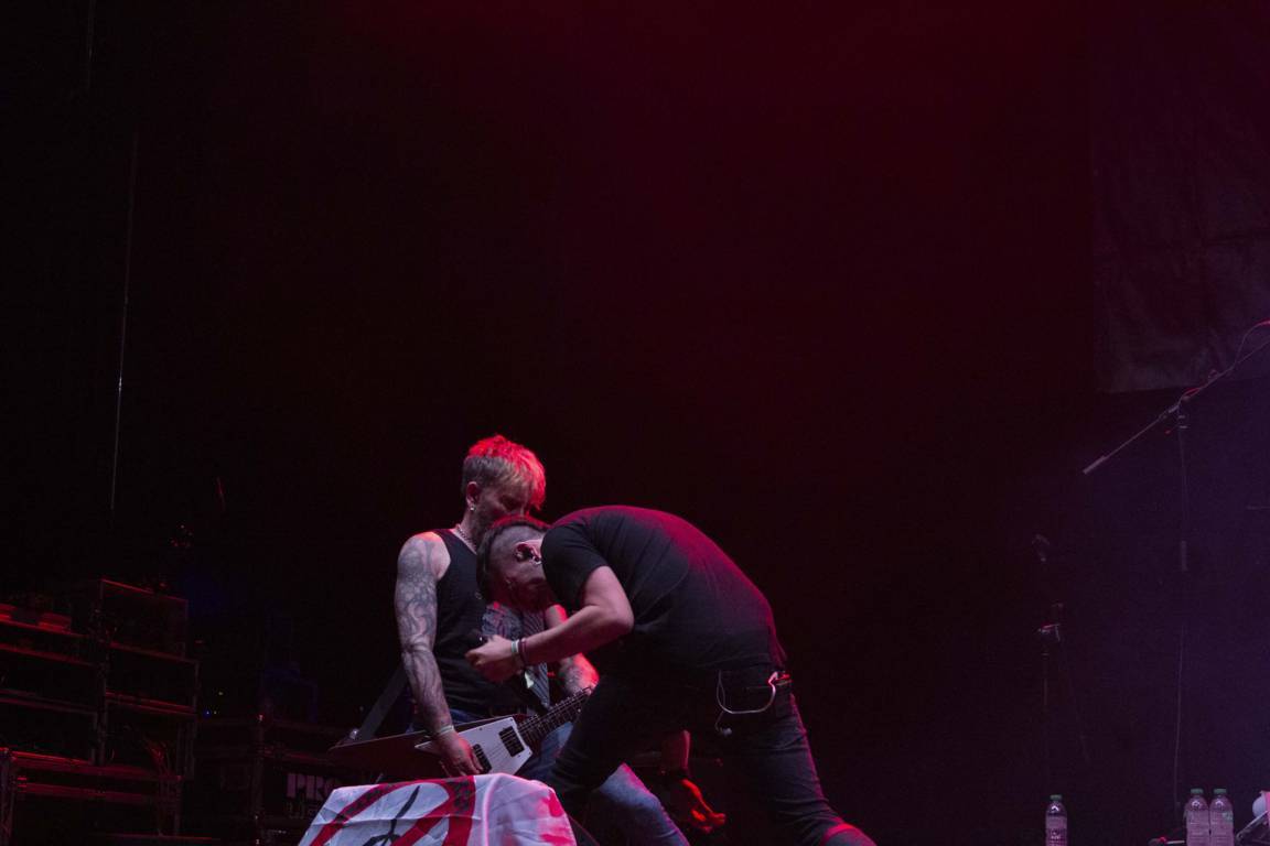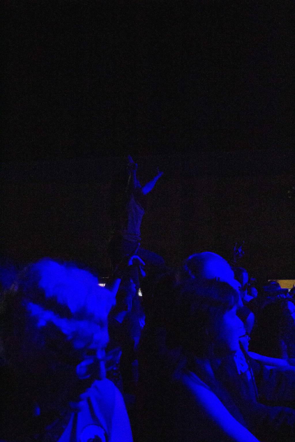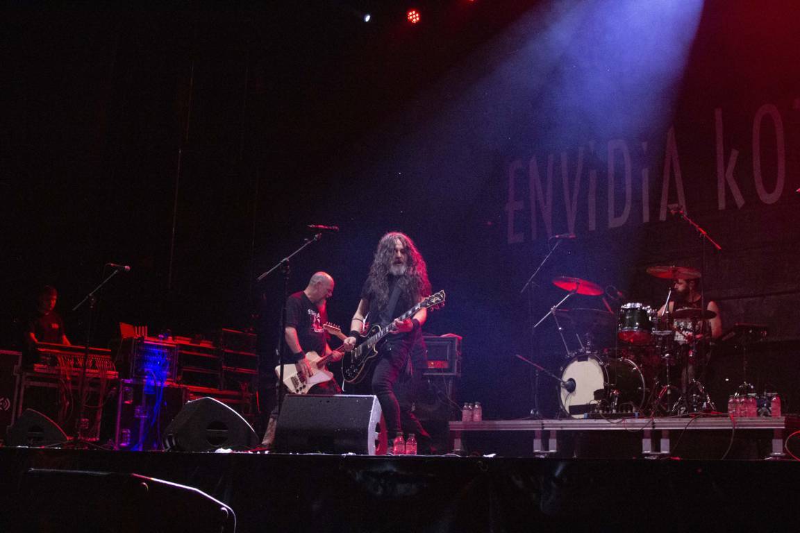 El espacio entre el público y la valla que protege el escenario se ha ido reduciendo paulatinamente. Cuando llega el turno de Envidia Kotxina, ya ha desaparecido. La gente está en la zona donde los bajos hacen que te retumbe el pecho, y el suelo bajo tus pies. El fervor que envuelve al público, causa un arrebato en el que un espontáneo con agilidad felina salta la valla y se sube al escenario. Allí es recibido con caras de sorpresa, pero los músicos no paran de tocar.