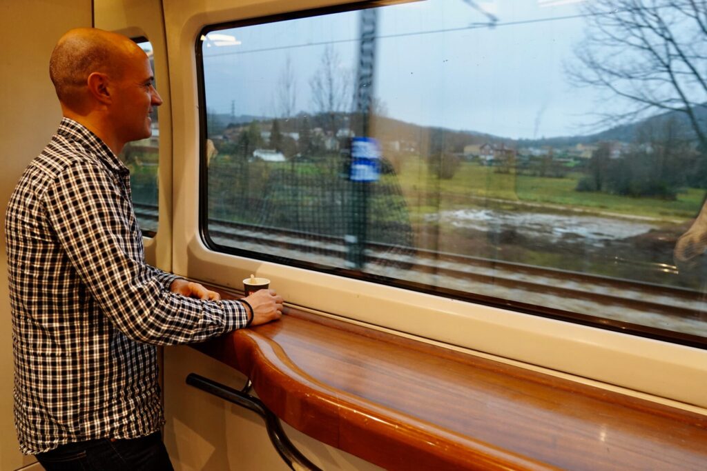 Mucho menos tiempo pasó en León, Víctor, un joven de 33 años trabajador de la estación de tren de Oviedo que, según salió de trabajar, montó en el primer tren de la línea, a las 6.56 horas, y que cogió el primero en sentido inverso para regresar a Gijón, su lugar de residencia, donde llegará a las 10.22 horas después de “aprovechar la oportunidad de hacer historia”.