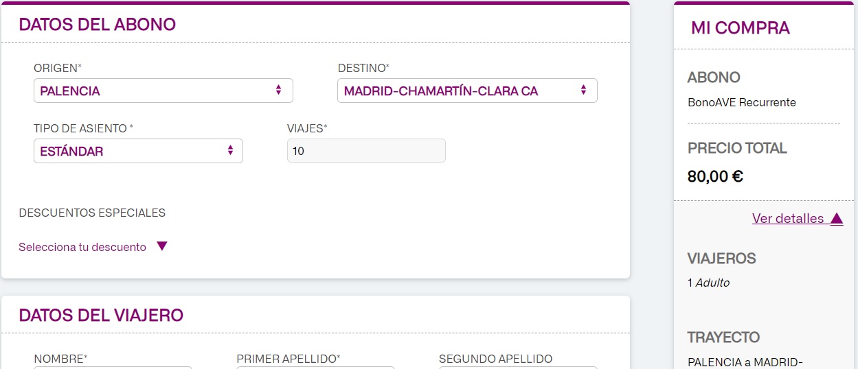 Aunque el abono está denominado de viajeros recurrentes, una persona que haga tres viajes, e incluso dos en determinados casos, un simple Ida y Vuelta desde Palencia a Madrid, ya habrá amortizado la inversión de 80 euros que debe hacer para adquirir el bono de 10 viajes. Porque, por ejemplo, los precios de los billetes entre Palencia y Madrid para el día 1 de septiembre, jornada en la que se implementa la medida, tienen un precio de entre 38,80 y 40,20 euros.
