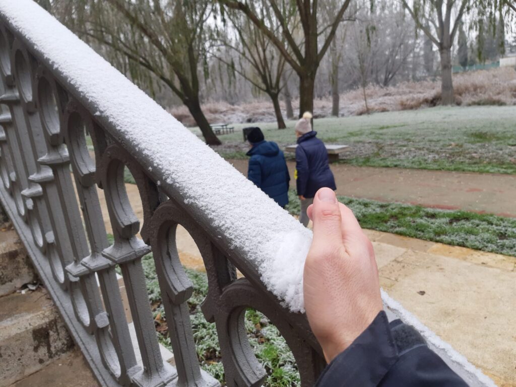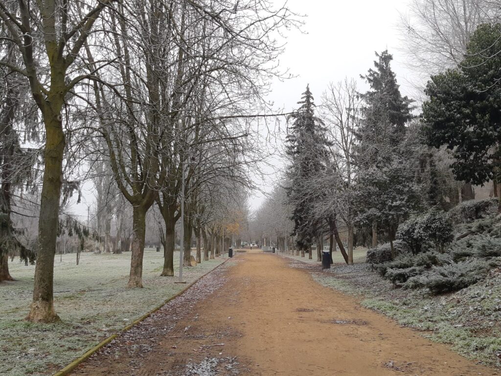 Crea esa apariencia de la nieve, pero sin los inconvenientes que generalmente esta genera. La cencellada que ha sufrido o disfrutado la ciudad de Palencia ha dejado bellas estampas en la misma. Especialmente en los parques y en la zona del río donde esos copos de niebla se han depositado y han aguantado más.