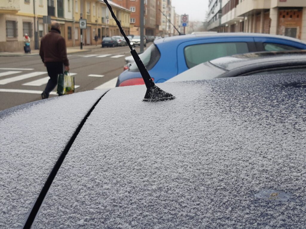 Próxima madrugada se espera lluvia o llovizna engelante en León y Palencia: “Precipitación formada por gotas de agua subfundida que se congelan al impactar sobre el suelo y objetos en superficie”=>formación de placas de hielo