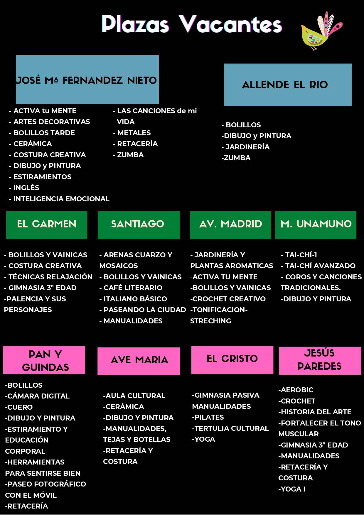 Todavía restan unos días para que den comienzo los cursos en los Centros Sociales y las Aulas de Mayores para la temporada 2022/2023. Sin embargo, como destaca el Ayuntamiento de Palencia, aún se cuentan con plazas libres para las actividades previstas.