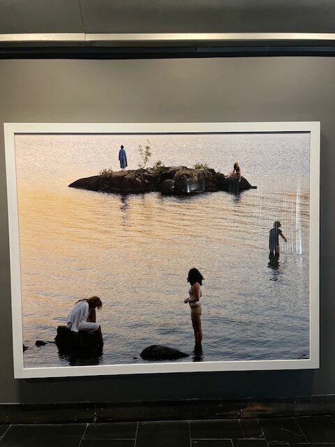 La presencia física se hace patente en el resto de las series expuestas en el Museo de Palencia. En ‘Paraíso’, con imágenes datadas en 2002 y 2003, aparecen figuras en torno a un islote, aparentemente desconectadas entre sí. Vistas desde la lejanía, Carmela García las retrata de espaldas buscando la identidad en un contexto paisajístico determinado por el agua y la tierra.