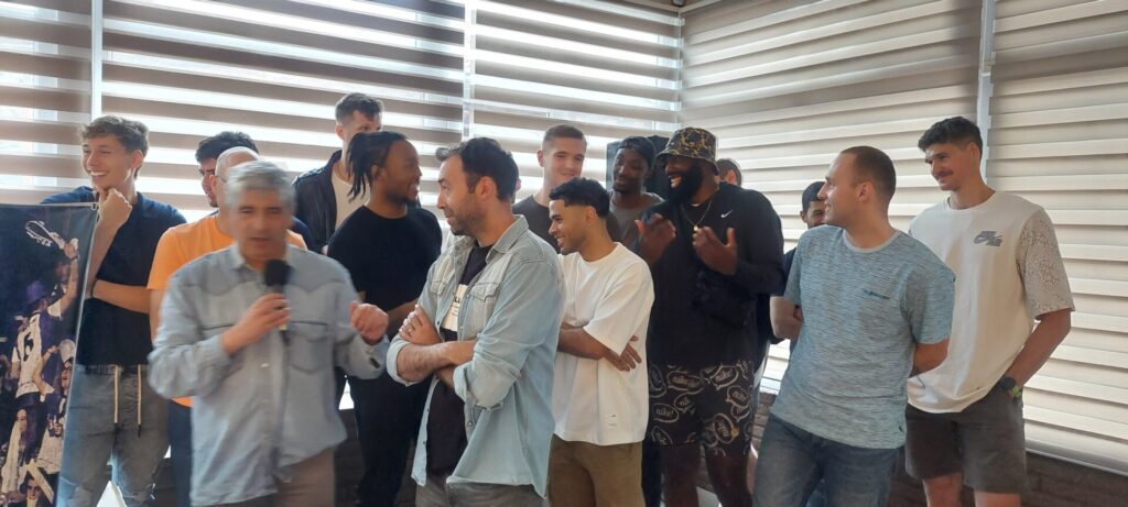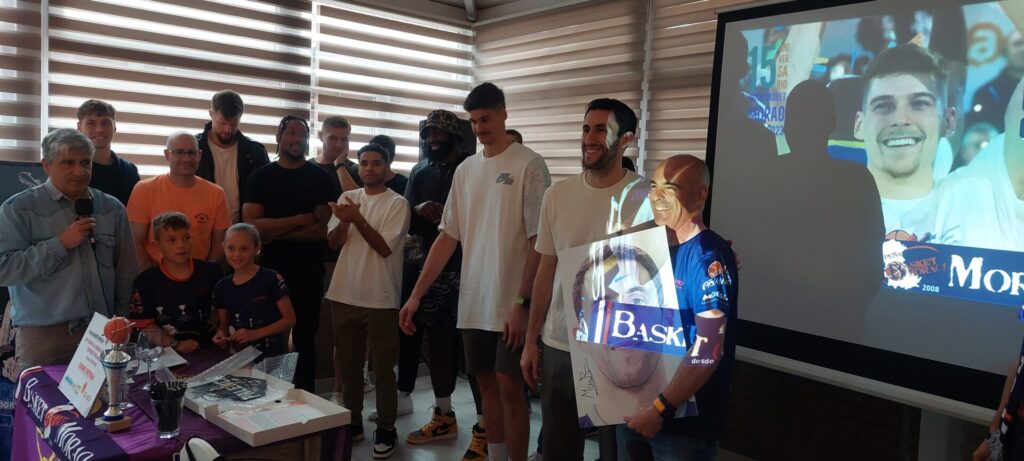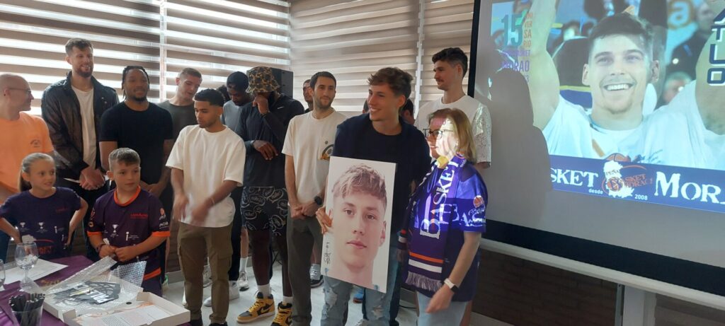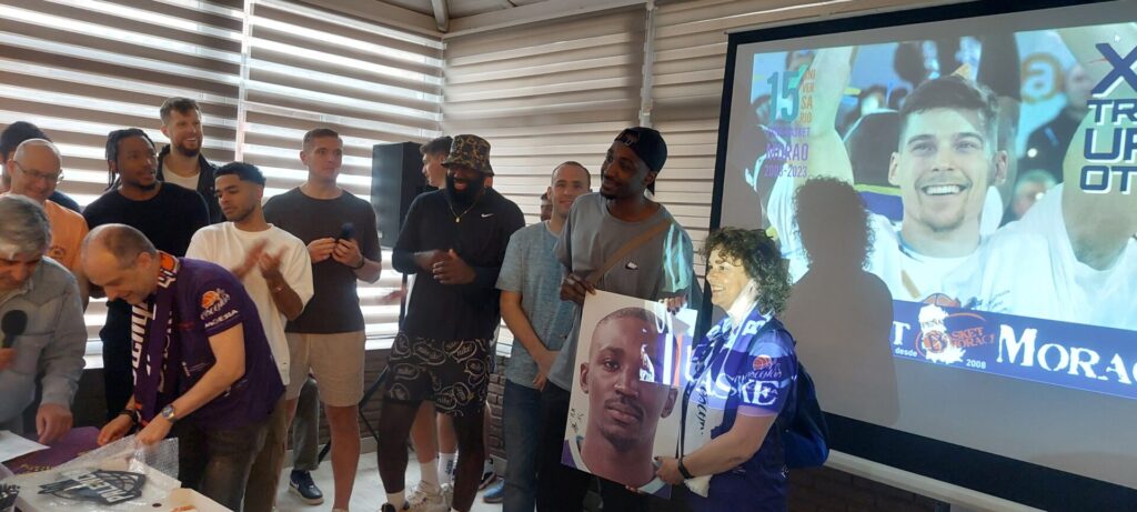 Fue pasadas las 19:30 horas cuando entraron en uno de los salones del hotel todos los jugadores acompañados por los miembros del cuerpo técnico con una merecida ovación por parte de los 80 socios de la Peña Basket Morao allí presentes.