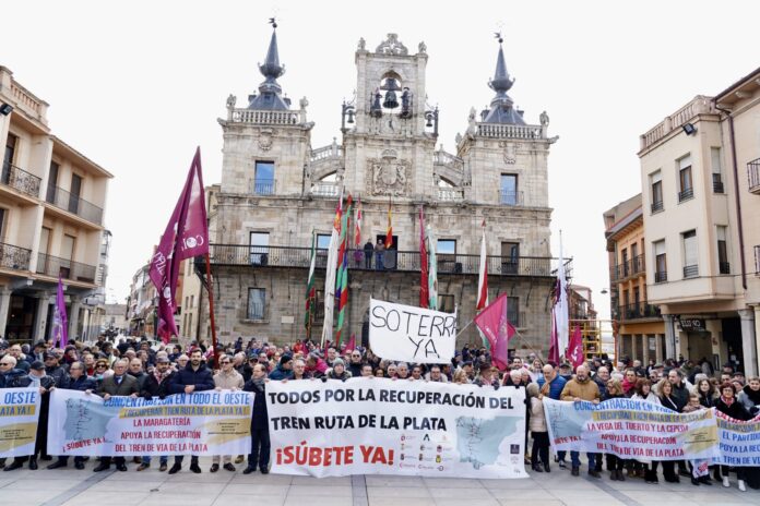“Que se nos escuche, se rectifique y se atienda a esta parte de España”. Es una de las peticiones que se lanzó hoy al Gobierno en la concentración celebrada en Astorga para reclamar la reapertura de la Vía de la Plata con la inclusión del tramo ferroviario Astorga-Palencia en la Red Básica Ampliada que el Ejecutivo plantea a la Unión Europea.