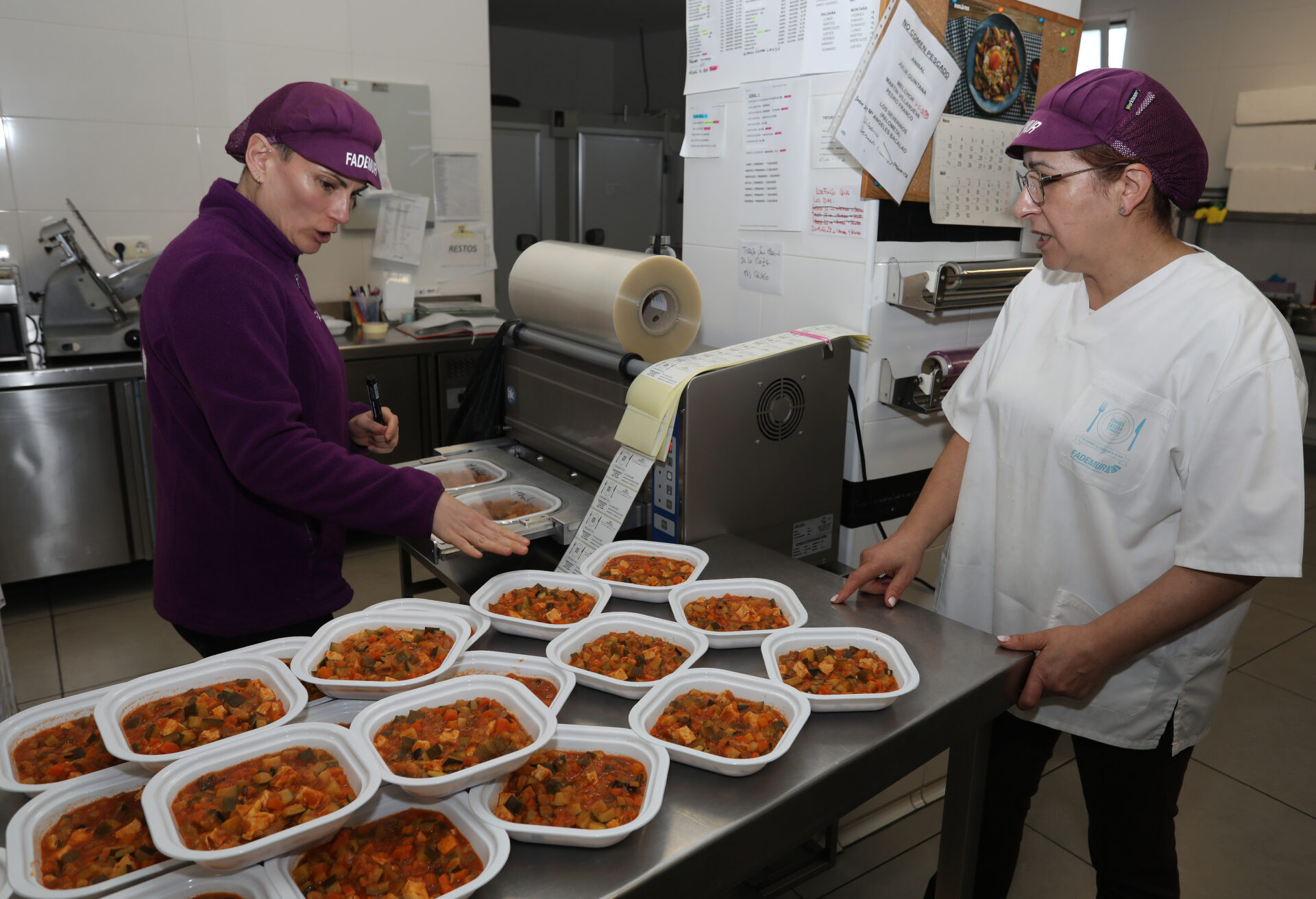 Actualmente, la cooperativa gestiona cinco rutas de reparto que cubren largos trayectos, con hasta tres horas de duración. Para optimizar recursos, entregan comida los lunes, miércoles y viernes a algunos usuarios más lejanos, utilizando técnicas avanzadas como el enfriamiento rápido y el termosellado a 160 grados, que garantizan la seguridad alimentaria sin conservantes. “Todo es natural, no usamos aditivos”, subraya Loreto. Este compromiso con la calidad se extiende a los ingredientes: “Estamos en una zona de legumbres y patatas, y todo lo que podemos comprar local, lo hacemos. Es producto de kilómetro cero”.