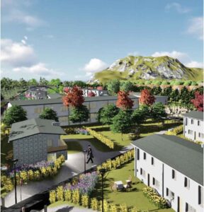 - Este proyecto incluye apartamentos, chalets, pisos, un bar y sala polivalente, enfermería, un tanatorio, pista multiusos, parque infantil, zona de ejercicio y un hotel.