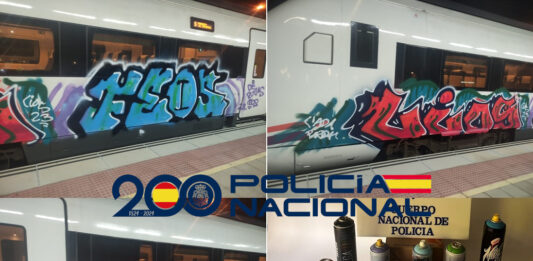 Agentes del Cuerpo Nacional de Policía detienen “in fraganti” a tres varones haciendo pintadas en un tren en la estación de Palencia Agentes del Cuerpo Nacional de Policía de la comisaría de Palencia han detenido a tres jóvenes mientras estaban pintando grafittis sobre el carenado de un tren regional de Renfe estacionado en la estación … Sigue leyendo Con las manos en el spray, correspondencia con la Comisaría de Policía de Palencia