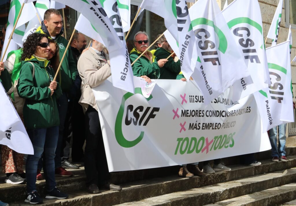 La Central Sindical Independiente y de Funcionarios (CSIF), sindicato más representativo en las administraciones públicas, ha convocado hoy movilizaciones en toda España para exigir al Gobierno que se mejoren las condiciones laborales de los empleados públicos en diferentes ámbitos, entre ellos la subida salarial pendiente desde el año pasado y un nuevo acuerdo retributivo. Esas concentraciones, en Palencia, se ha trasladado a la Subdelegación del Gobierno.