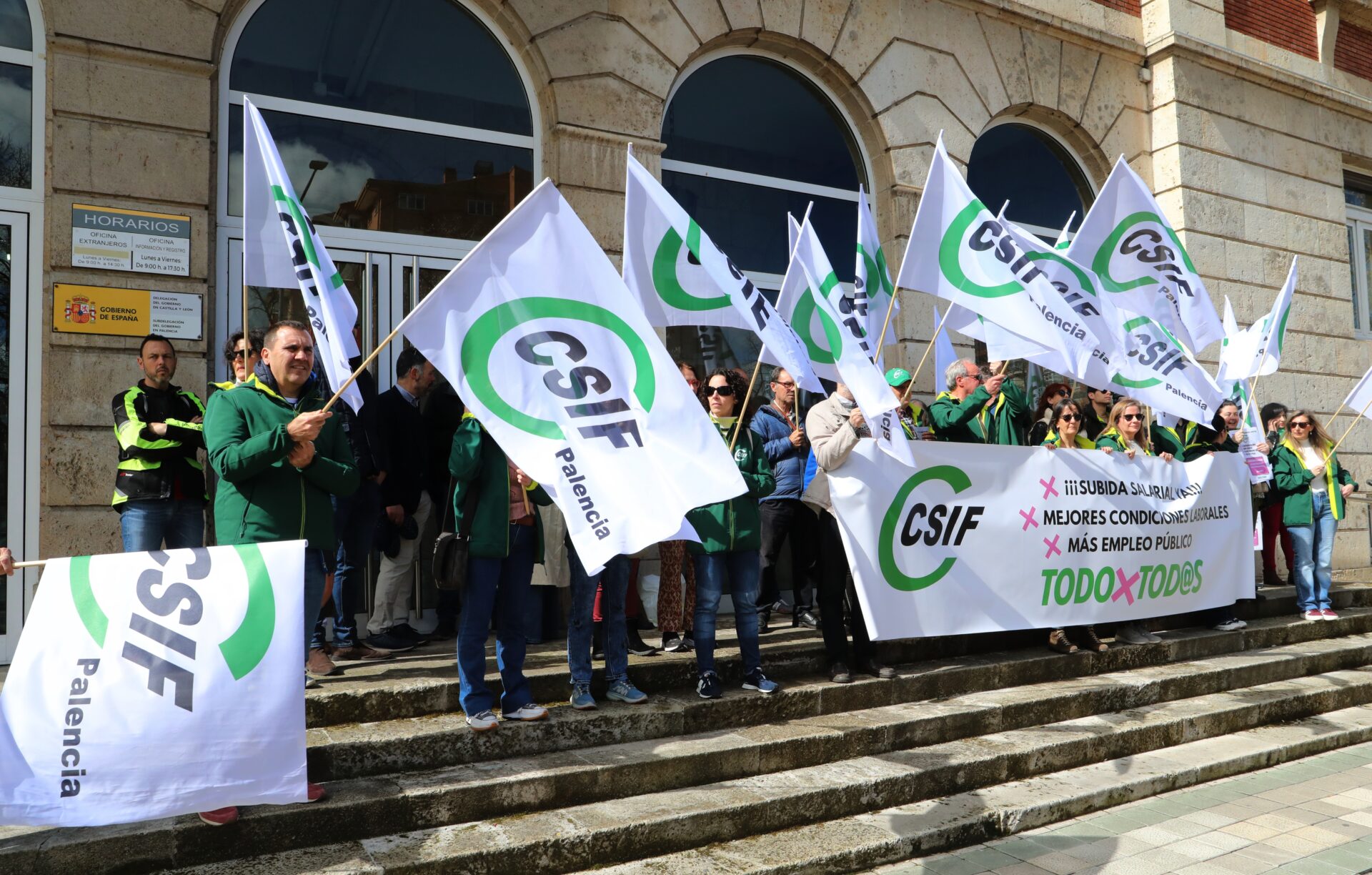 La Central Sindical Independiente y de Funcionarios (CSIF), sindicato más representativo en las administraciones públicas, ha convocado hoy movilizaciones en toda España para exigir al Gobierno que se mejoren las condiciones laborales de los empleados públicos en diferentes ámbitos, entre ellos la subida salarial pendiente desde el año pasado y un nuevo acuerdo retributivo. Esas concentraciones, en Palencia, se ha trasladado a la Subdelegación del Gobierno.