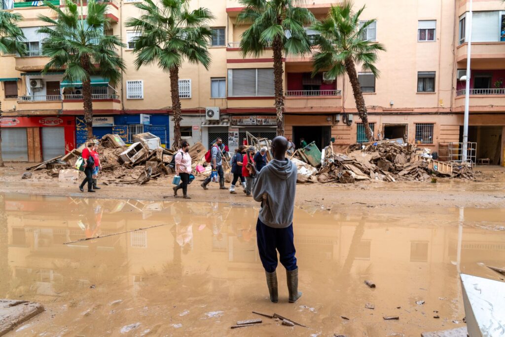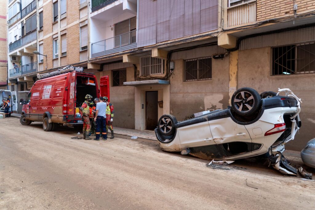 Un equipo de Ical se dirige hacia allí. Es necesario caminar casi ocho kilómetros, envueltos en botas de goma y con cinta alrededor de las rodillas para evitar empaparse los pies. No se distinguen las aceras de las calzadas y solo una silla de un bar, una sombrilla o una mesa advierten de la existencia de alcantarillas abiertas para dejar fluir el agua retirada. De repente, coches en una ‘rambleta’, en Catarroja, arrastrados por la riada, que en algunos puntos, aparte de altura, tomó una velocidad endiablada. Alberto, espera a distancia, con pantalón corto y botas, a que una grúa y los bomberos de La Coruña, extraigan su coche, que irá directo al desguace: “El coche estaba aparcado a un kilómetro de aquí. Imagina cómo ha llegado hasta aquí”. Junto a su hijo pequeño, se pudo salvar por unos pocos minutos.