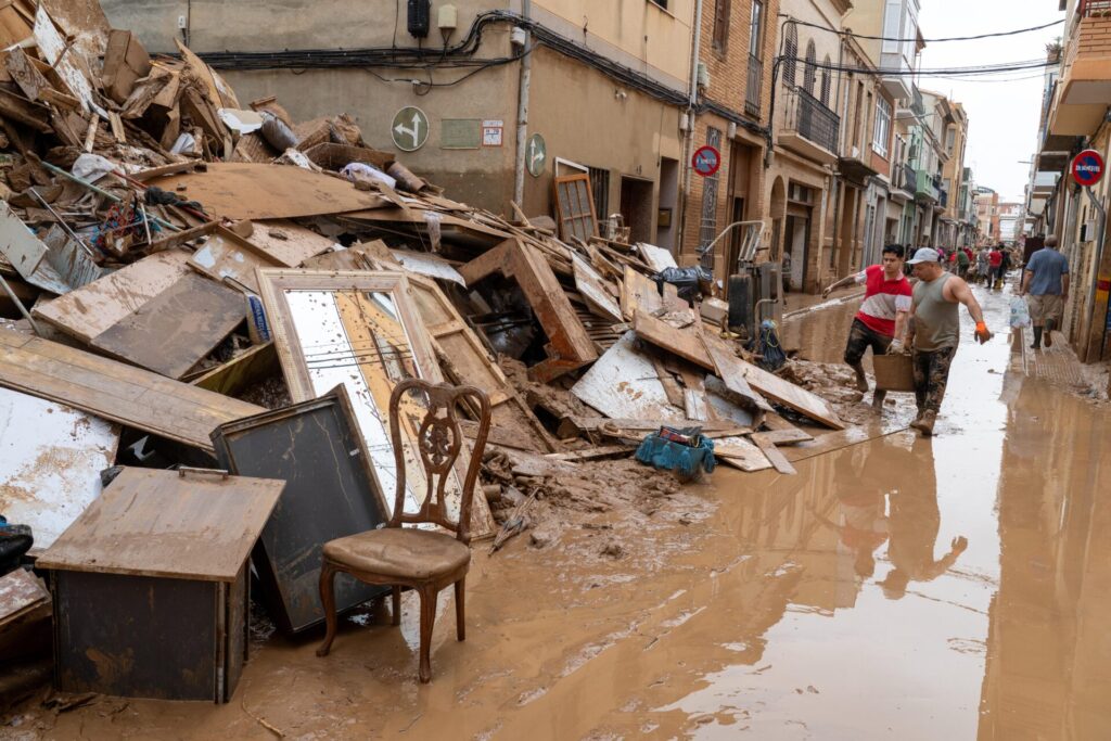 Una gran avenida une siete pueblos, desde Beniparrel hasta La Torre. Solo una calle separa Albal de Catarroja, donde la imagen empeora a cada metro. Una estantería y un espejo roto, como símbolo de la situación, se anteponen en el camino, en el que los tractores, los remolques y la maquinaria pesada se afanan en liberar todo un conglomerado de escombros, que a algunos les provocan cortes en su manos y pinchazos en la planta de los pies, motivo por el que los sanitarios han aconsejado vacunarse del tétanos a voluntarios y vecinos.