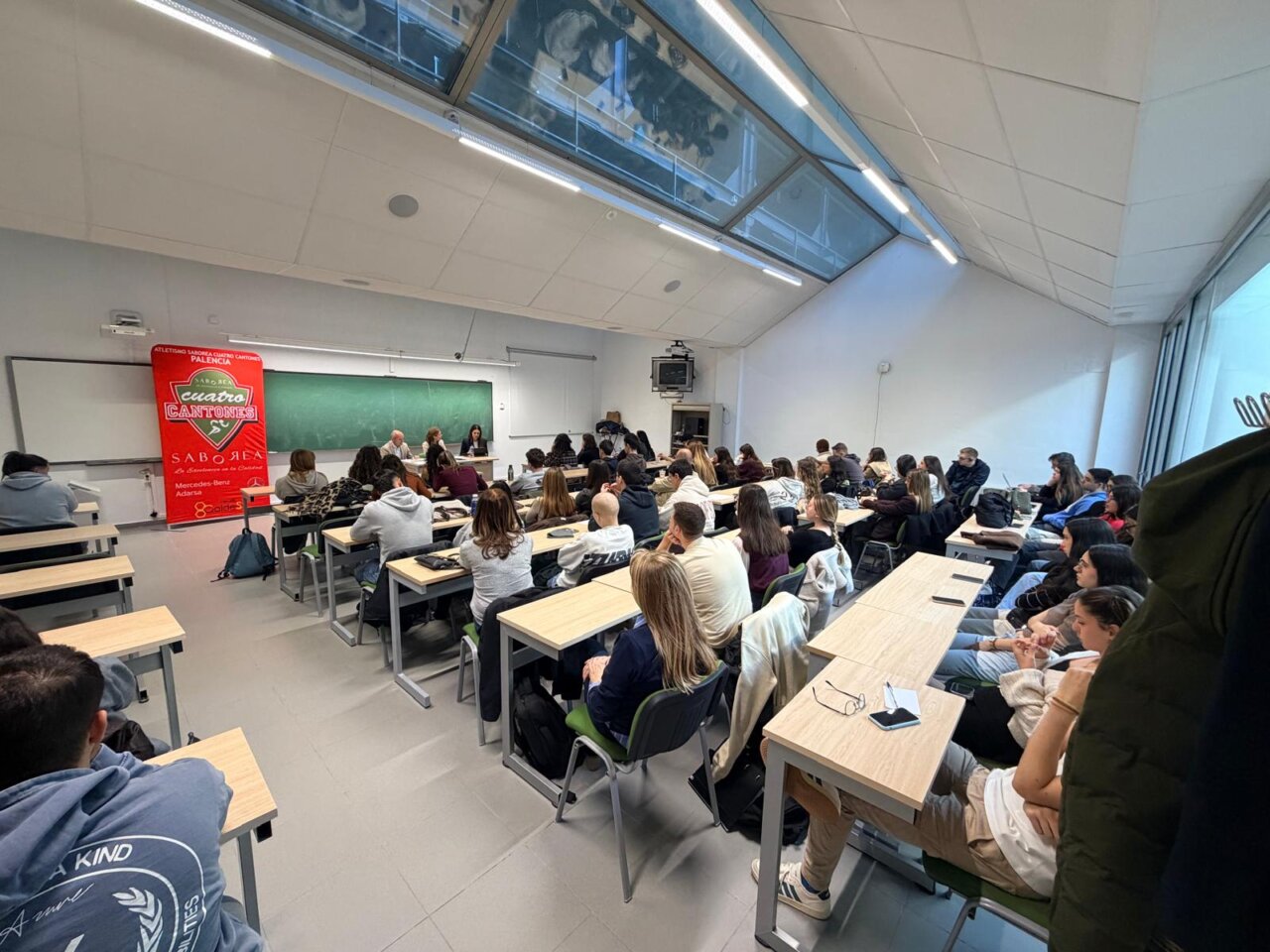 Dosis de frescura, pero sobretodo de realidad y de trabajo en entornos de presión, ha sido la que recibieron en el día de ayer los alumnos de la Facultad de Comercio y Relaciones Laborales del Campus de Palencia, de la mano de la coach Patricia Megido, del Ultra fondista del Club Atletismo Saborea Cuatro Cantones David Ontaneda y de la secretaria académica de la Facultad de Comercio y Relaciones Laborales, Ana Ortega, quién se encargo de llevar el hilo conductor de una Conferencia basada en la experiencia de un atleta y en la planificación técnica de una coach.