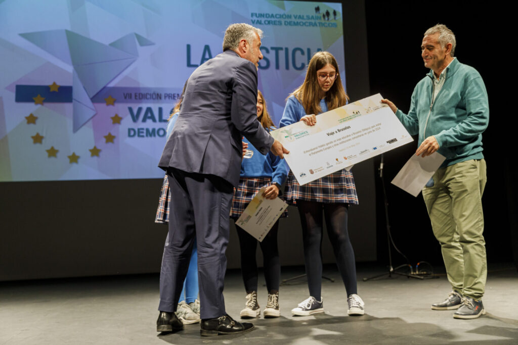 Además de los respectivos diplomas acreditativos, las vencedoras, tres alumnas de 3º de la ESO del centro educativo palentino, han recibido un trofeo realizado en vidrio por la Real Fábrica de Cristales de La Granja y un viaje educativo a Bruselas para visitar el Parlamento Europeo y otras instituciones comunitarias el próximo junio.