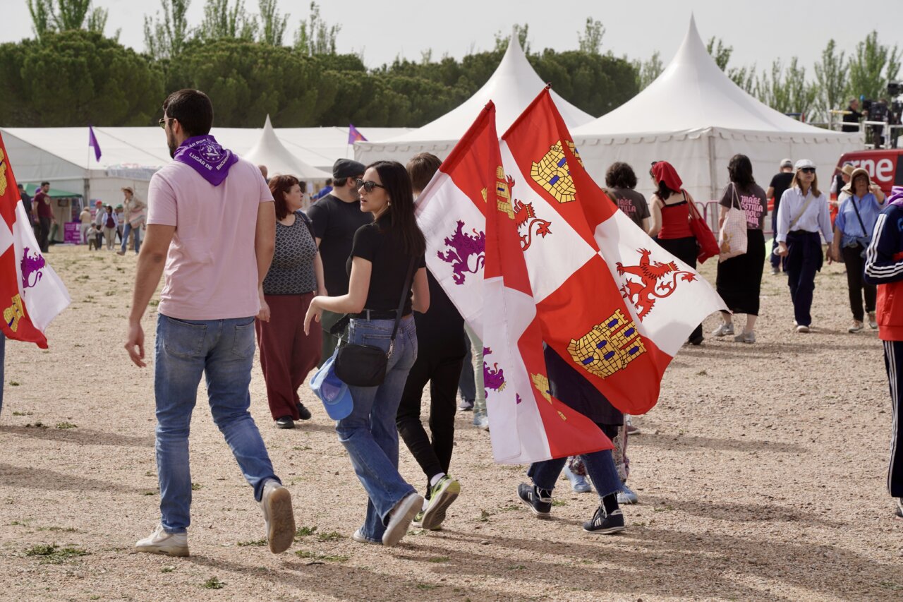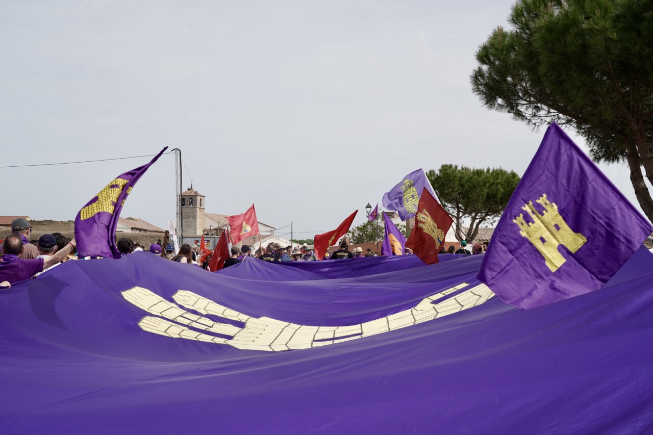 A continuación, los partidos y colectivos tomaron el relevo en el monolito. Uno de los primeros en hacerlo fue Izquierda Castellana, a la que sucedieron los socialistas de Castilla y León que llegaron acompañados por el grupo ‘Aires Castellanos’. En su segundo Villalar, el secretario general, Carlos Martínez, defendió la inmigración como la “última de las esperanzas” de Castilla y León y pidió a Fernández Mañueco que no acepte la línea roja de la ‘prioridad nacional’ marcada por Vox.