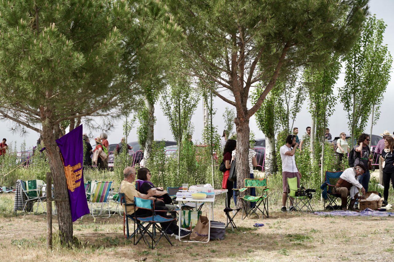 La campa estrenó este año una escultura conmemorativa y una carpa de grandes dimensiones que permitió a los miles de asistentes refugiarse de los rayos del sol, aunque se quedó pequeña. Tras las proclamas políticas, llegó la hora de comer lo que hizo que se formaran largas colas para poder comprar un plato de paella y una consumición con la que hidratarse.