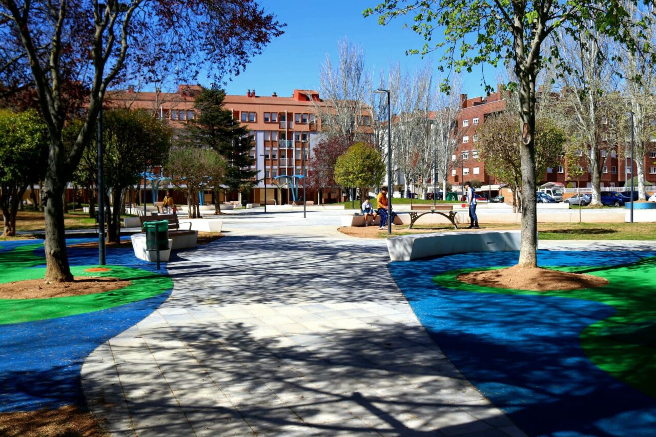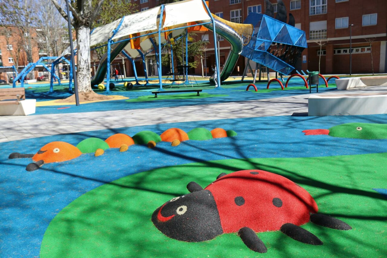 Vista del nuevo parque de Virrey Velasco en Palencia con niños jugando.