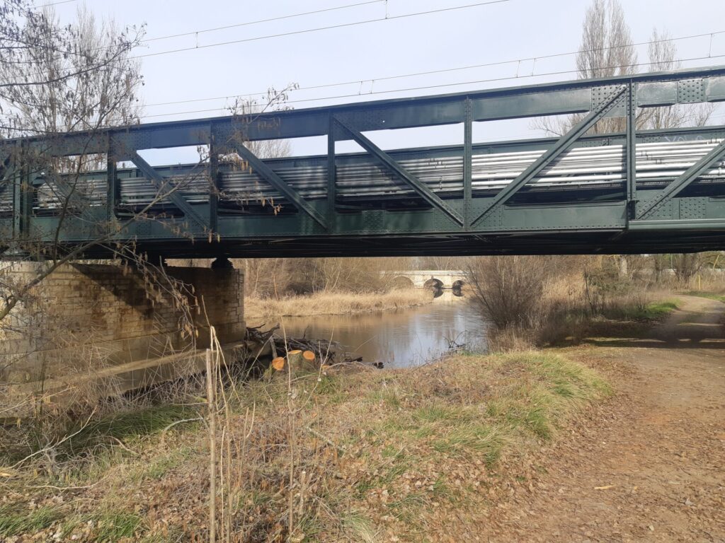 Porque Adif, en el proyecto de duplicación de la plataforma ferroviaria de Alta Velocidad al norte de la estación de Palencia en su camino hacia León y Asturias, ha decidido liberar a ese puente metálico, reacondicionado hace una década para que pudieran circular los AVE, precisamente para que en poco más de un año, no pasen más trenes de Alta Velocidad sobre él.