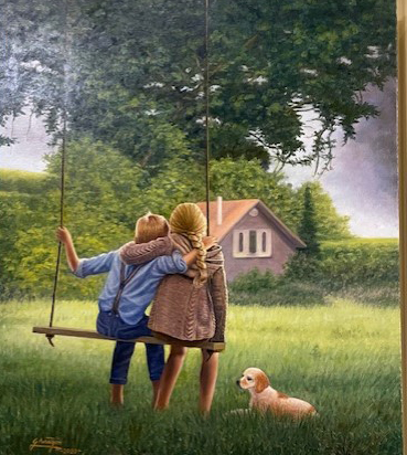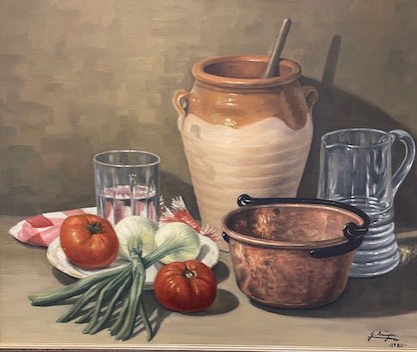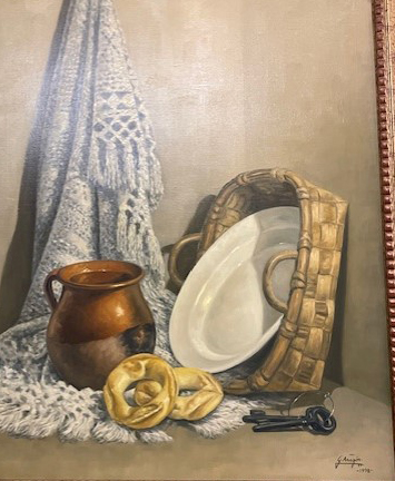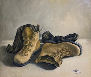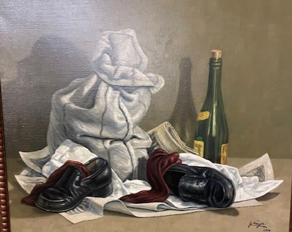 Godofredo Aragón no ha participado en exposiciones de forma habitual, por lo que esta muestra del Casino, titulada ‘Mi vida… “la pintura”, se presenta como una oportuna y acertada antología para conocer su obra, ya que se exponen cuadros pintados desde 1974, fecha del titulado ‘Las botas’ –todos los cuadros de los años setenta son bodegones–, hasta 2020, año de ‘El columpio’. Entre ambas obras se extiende una dilatada trayectoria resumida aquí en una veintena de cuadros, donde proyecta su dominio de la pintura, del color, de la luz y de la perspectiva. En 2021 pintó el cartel de la Semana Santa de Palencia y desde 1995 cuelga en la iglesia de la Asunción de su pueblo natal el cuadro donado por él titulado ‘Virgen Asunta a los cielos custodiada por ocho ángeles’ (óleo sobre tela pintado en 1993 de 162 por 120 centímetros).