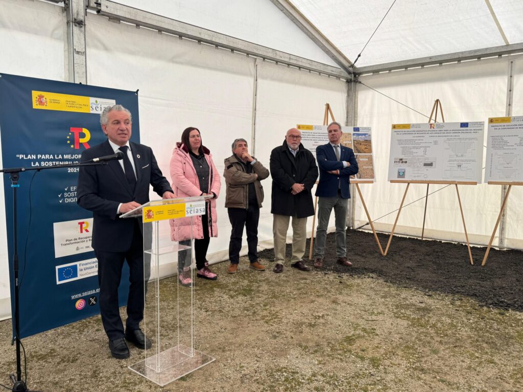 Durante la presentación de los trabajos, García destacó la inversión que el Gobierno central está llevando a cabo en la Comunidad, donde se están invirtiendo 245 millones de euros en seis obras de modernización de regadíos, cinco de las cuales están en ejecución (cuatro en León y una Palencia) y una próximamente en licitación (en Soria). “Se pone inicio a una inversión importantísima que el Gobierno hace con la Junta. Estamos invirtiendo 592 millones de euros entre el Plan de Recuperación, Transformación y Resiliencia (PRTR) y el convenio clásico de la Sociedad Estatal de Infraestructuras Agrarias (SEIASA)”, apuntó Begoña García. “Estamos hablando de digitalización, de telemando, de un aprovechamiento de las energías y un cambio de red de tuberías importante de más de 13 kilómetros”, afirmó.