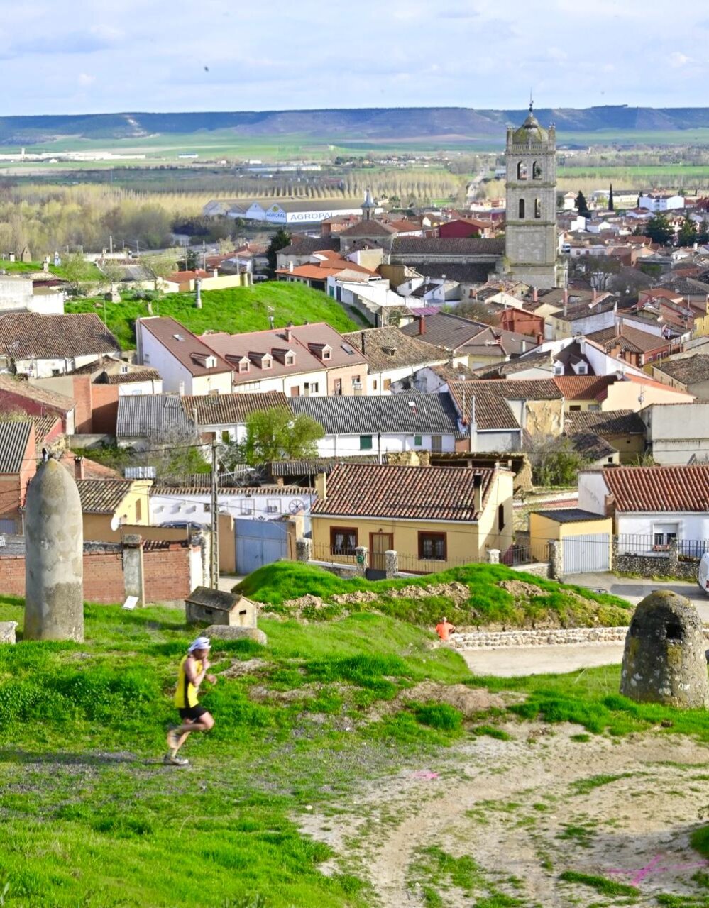 Corredor en el Palencia Trail Series en Dueñas con paisaje de fondo