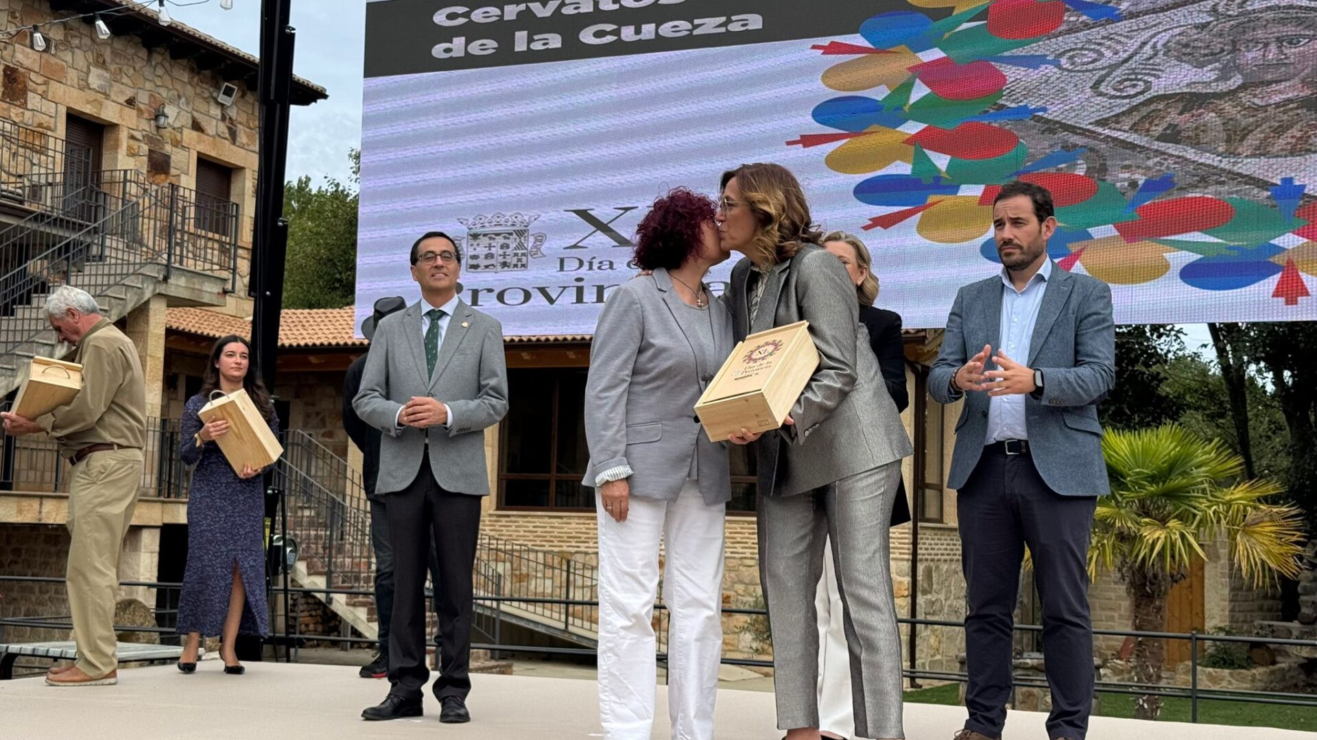 En este caso, subieron a recibir el reconocimiento, en representación de los alcaldes y presidentes de juntas vecinales de la provincia Arturo Calvo, alcalde Pedrosa de la Vega y Adolfo Palacios, alcalde Saldaña, por su vinculación con La Olmeda; y Lorenzo Heredia, presidente de la junta vecinal Quintanilla de la Cueza e Inmaculada Malanda, alcaldesa de  Cervatos de la Cueza, por la de La Tejada.
