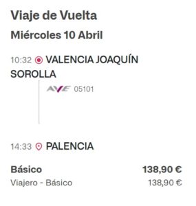 El otro tren que cubre esta relación, el Alvia que parece que tiene los días contados en Palencia con las llegada de los nuevos servicios entre Asturias y Valencia, es un tren de mediodía, saliendo a las 13,31 de Palencia y llegando a Valencia a las 17,40 horas.