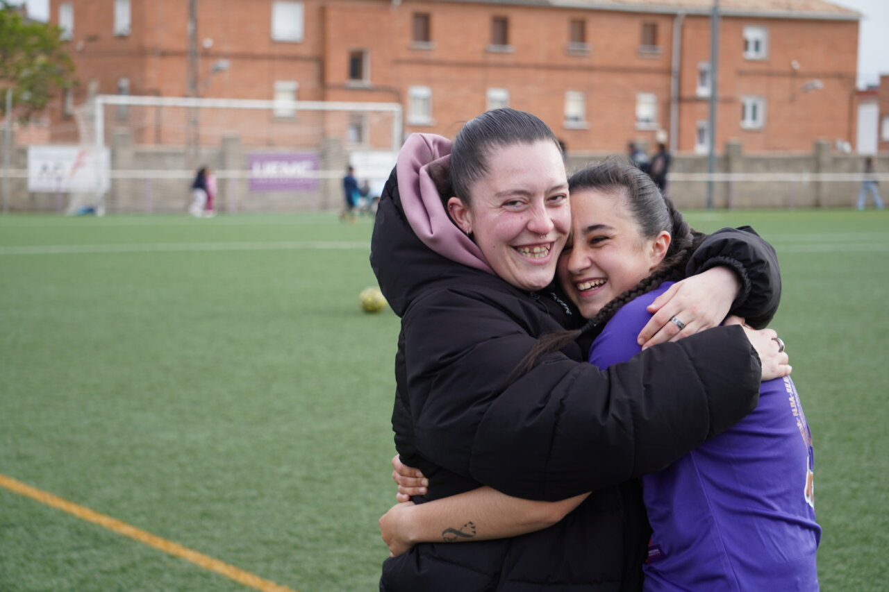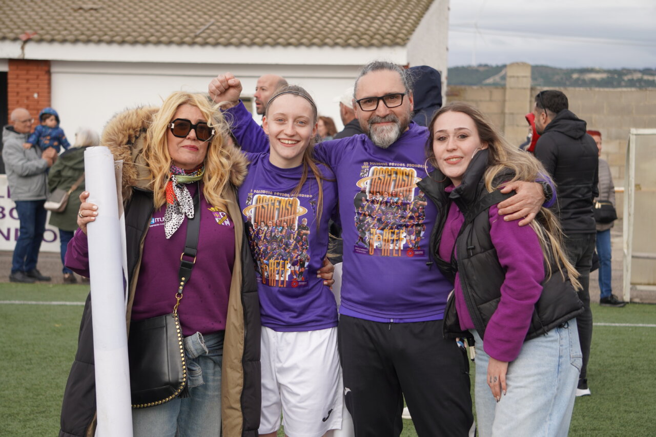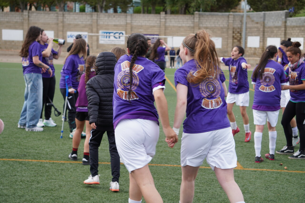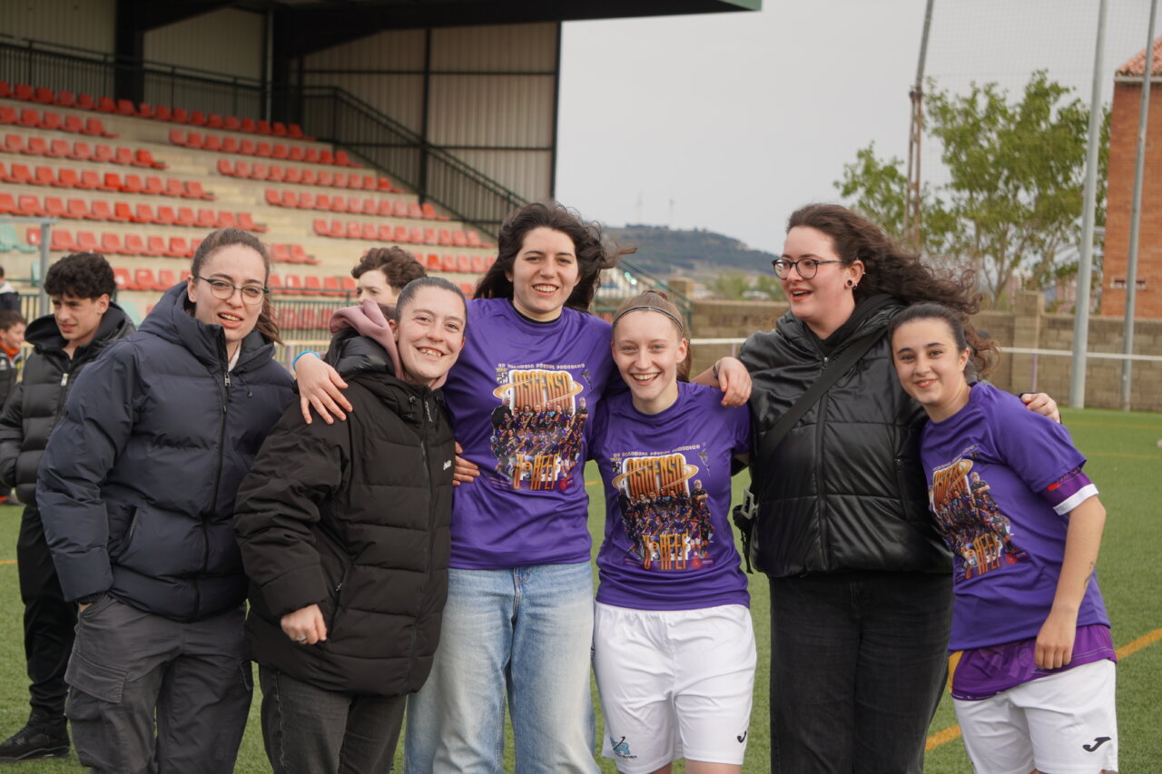 Y con el pitido final explotó todo. Jugadoras abrazándose, la cantera corriendo hacia ellas, gente entrando poco a poco al campo, fotos, bailes… No faltó el champan. Un momento que no necesita muchas palabras. Un momento que resume al club: una familia.